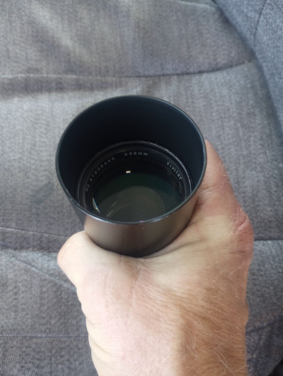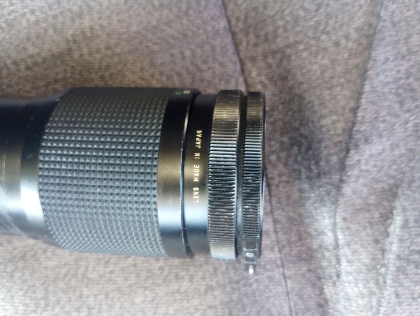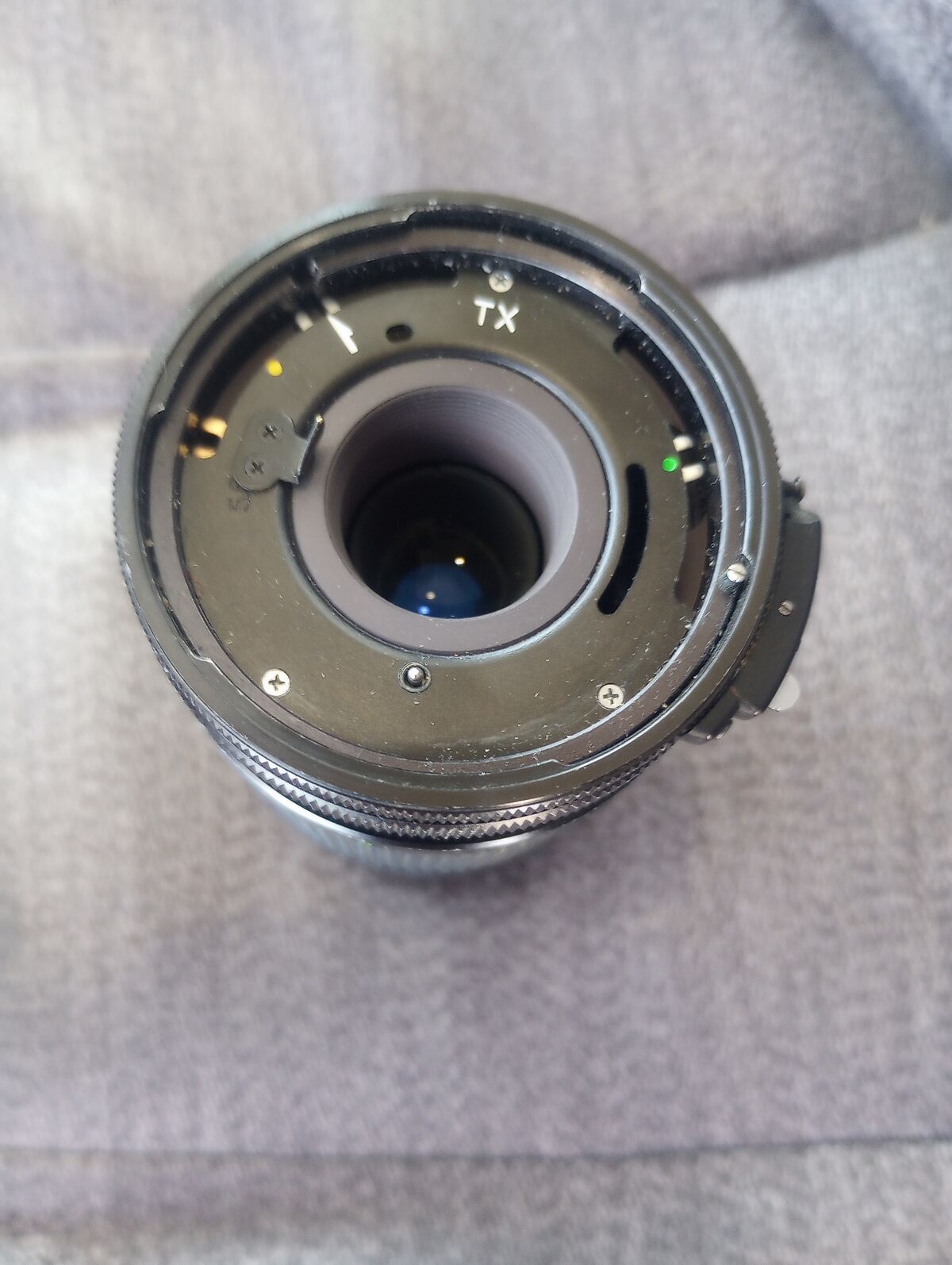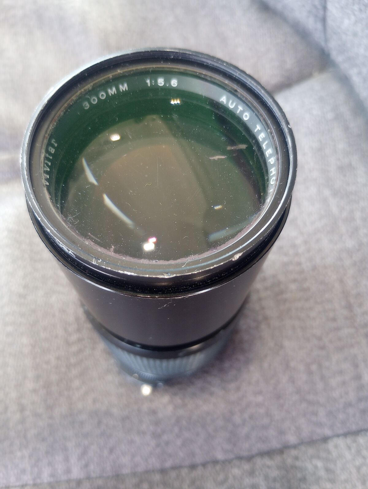 I have a used Vivitar 300mm 1:5.6 prime lens. It has a TX mount. It can be used with any camera if you can find the TX adapter for it. The TX adapters are available on eBay. It has the auto aperture. It has a built in hood.