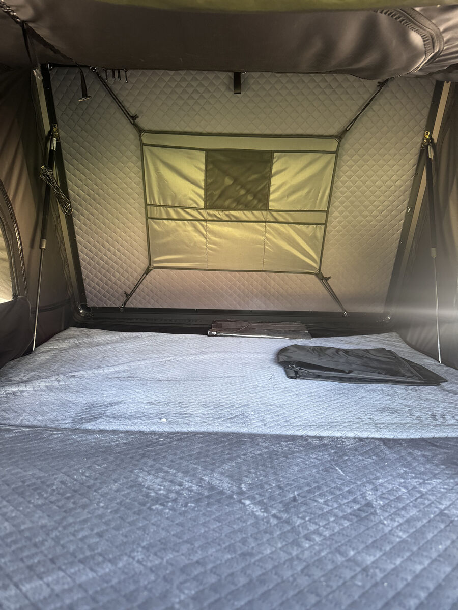 Model: Dynamite is a 3-person hard-shell lockable with an adjustable roof rack/cross bars. Also, includes an LED light bar that is color-changing and dimmable. Use with a USB power bank. Seasons:4 seasons Sleeping Capacity: 3/4 Persons Packed Size:50x 63 Weight: 150lbs Sleeping Size:83 x 63 x 43 Shoe Bags:2- shoe bags included Storage Bags: 3- storage areas LED Light: Included with the remote