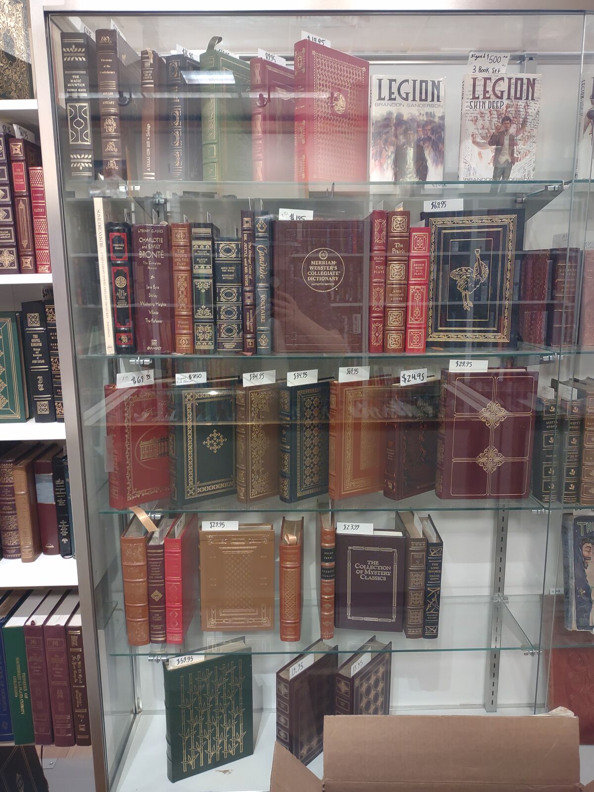 Our book selection is just as diverse. We specialize in classics, sci-fi/Fantasy, children's and Young Adult books, westerns, religious / LDS titles, war, horror, and graphic novels. We also feature favorites like Stephen King, Harry Potter, Star Wars, and Star Trek. Don't miss our budget-friendly $.99 and $5 section which we call the Discount Den. We also have a large section of beautifully bound leather books. The rare books, first editions and signed books are on display throughout our 31 glass display cases.