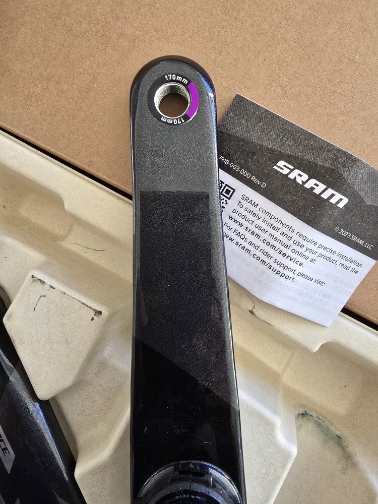 PayPalEssentially new, after a handful of rides by an older lady we had to change to a different crank length on her new bike, these are Sram Force Dub Wide 170 mm Carbon Fiber Crank Arms. Sram says: 8-bolt interface compatible with power and non-power AXS spiders and integrated chainrings DUB bottom bracket adds durability and simplicity Carbon fiber arms with gloss finish. New Retail $211. We're asking $125. Call or text (801)201-0799