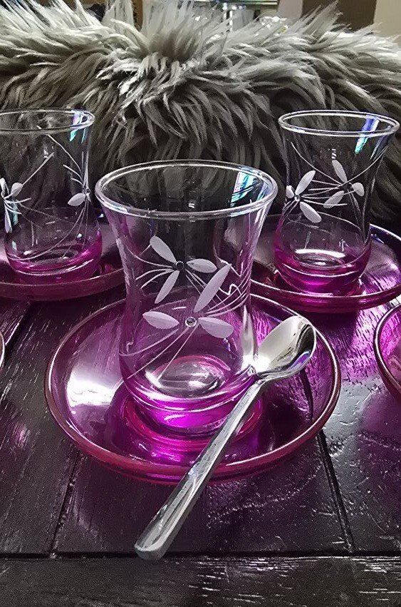 Turkish Tea Glasses and Saucers Set (10 Pieces), Arabian Persian Tea Cups (almost 3oz/ 80ml) (10 Pieces) with extra 5 stainless spoons. very beautiful & excellent condition