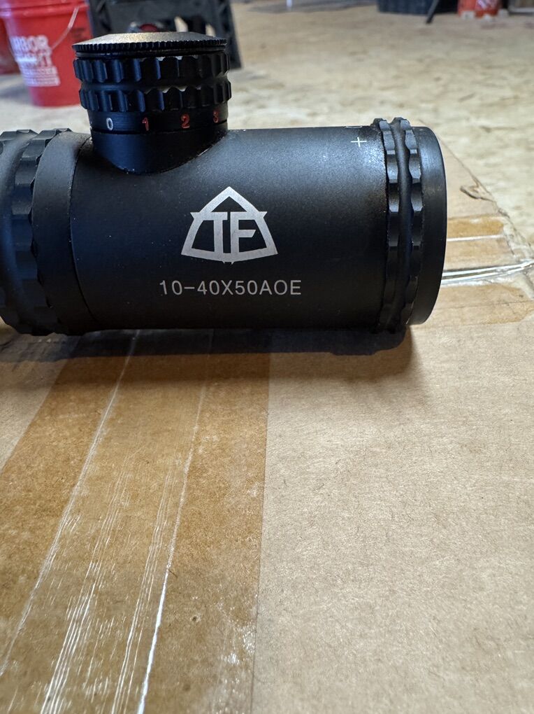 Trinity Force 10-40X50 AOE Scope. Mounted on my HMR .17 and was dead on every shot. It is pretty long and a little heavy so wasn’t really into it. Nice inexpensive scope - $75