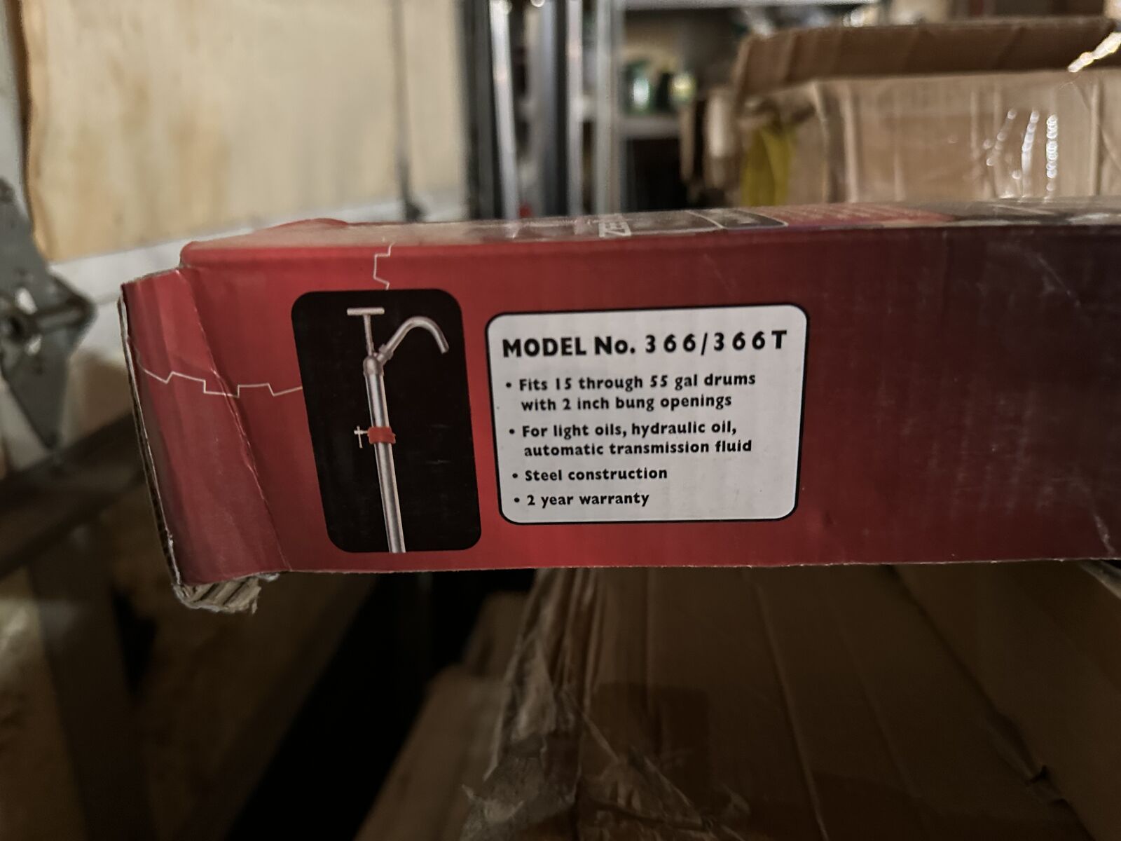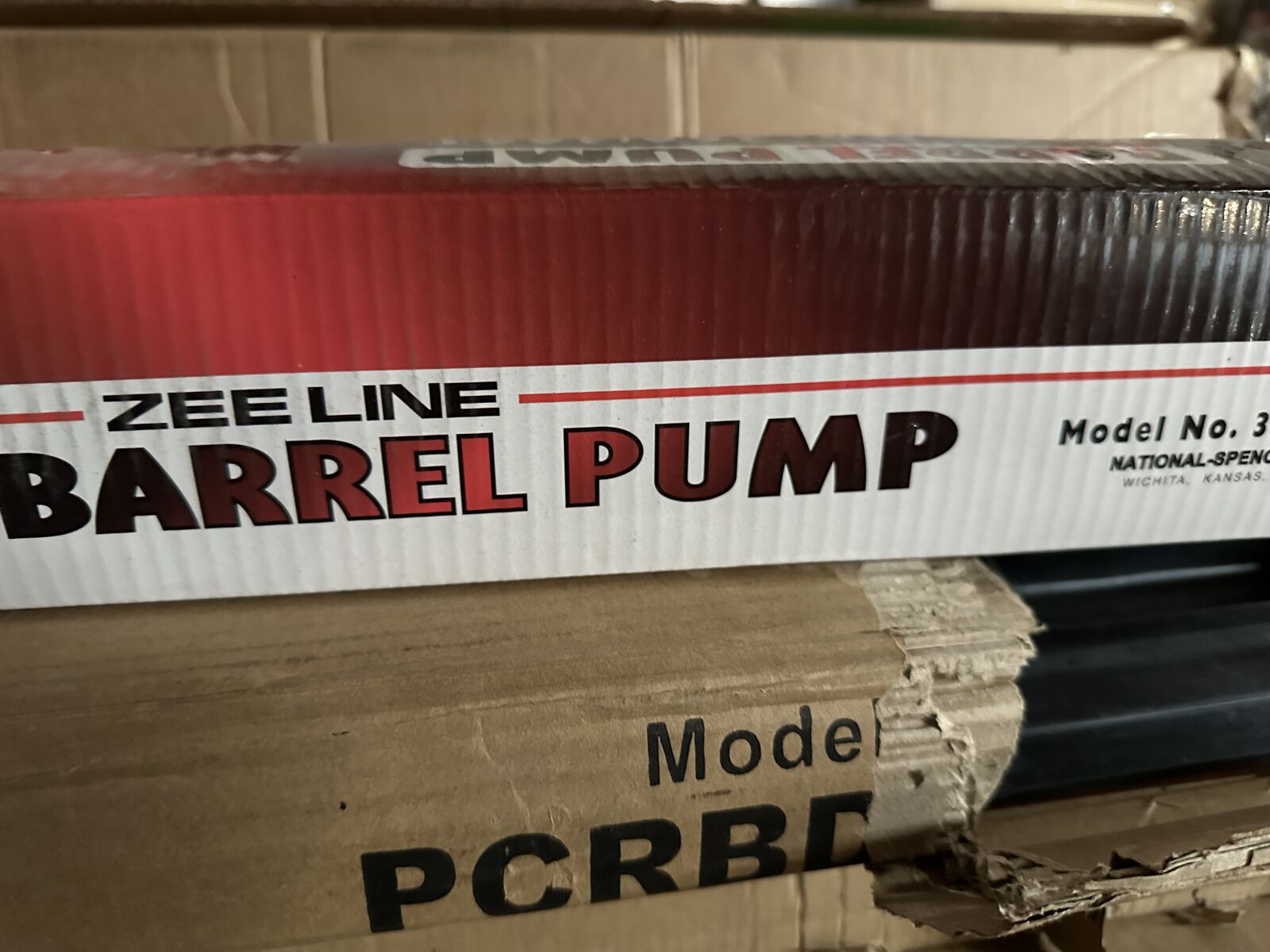 VenmoBrand new Zeeline barrel hand pump, model 366/366T. Plated steel body, die cast aluminum head, PTEF seal, powder coated. Delivery rate is 1 gallon per 6 lift strokes.