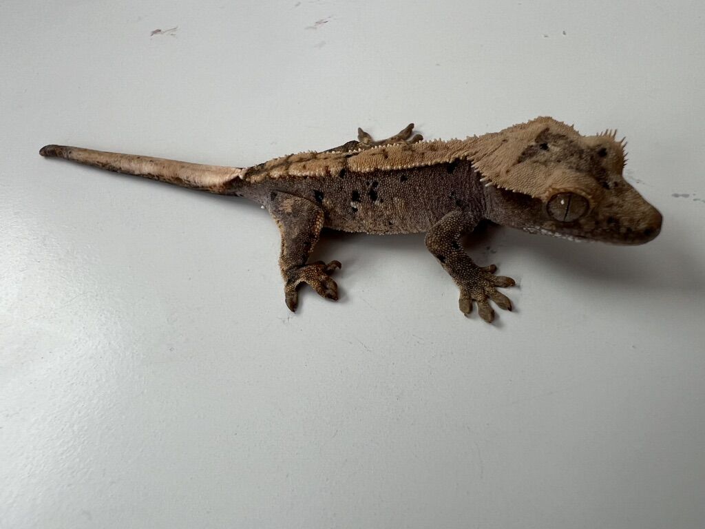 VenmoThis is a beautiful three month old crested gecko. It is played with a lot so it’s very calm and would be a great first pet. Super cute Dalmatian spots.