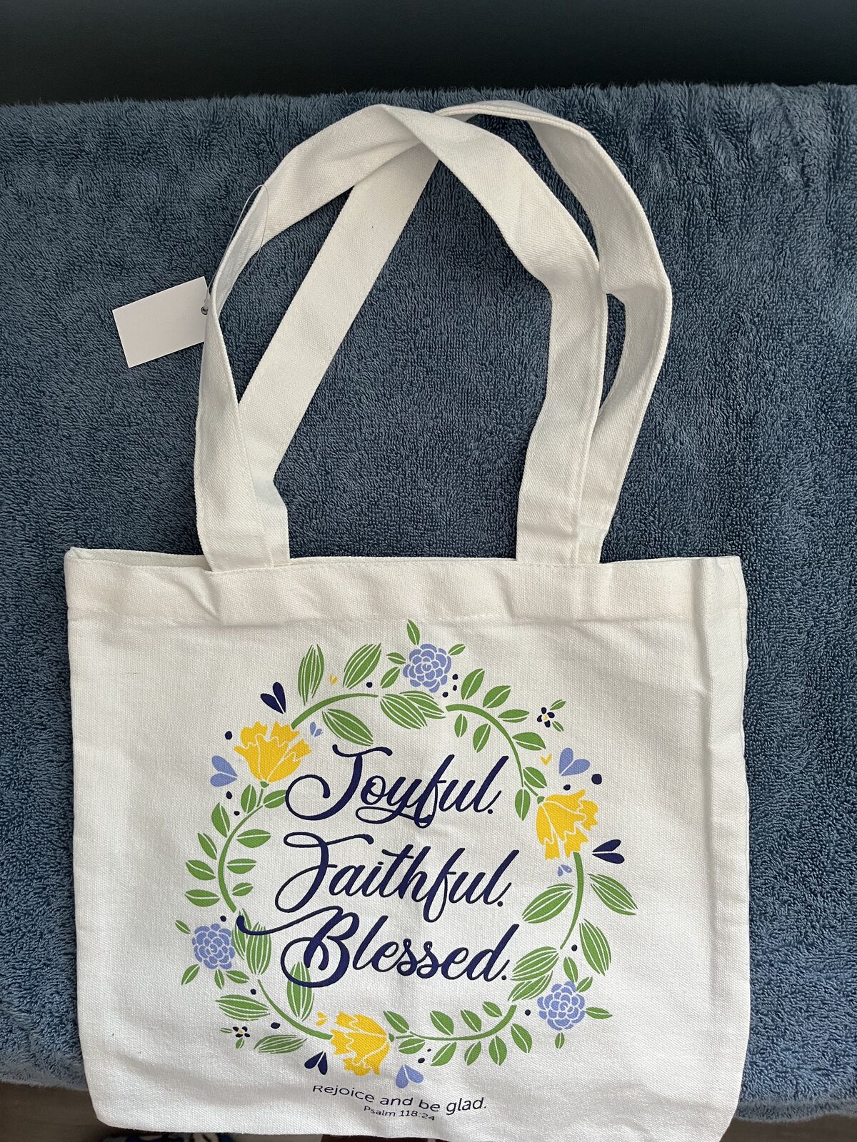 Christian Tote Bag - Joyful - Faithful - Blessed. Rejoice and be glad. This is BRAND NEW with the original tag on it.