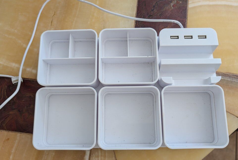 VenmoDesk Organizer Storage Box Built-in 3 USB Ports for Office or Home Personal Desktop White 10.7 * 7.2 * 1.7 Inch