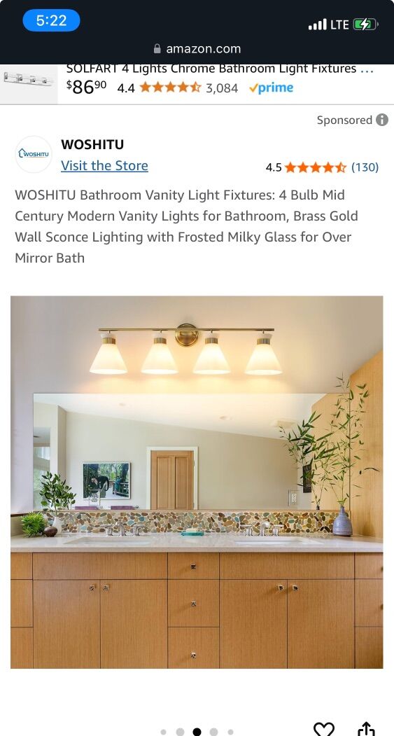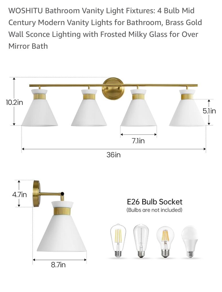 WOSHITU: 4 Bulb Brass Gold Vanity Lights, bathroom lights, brand new