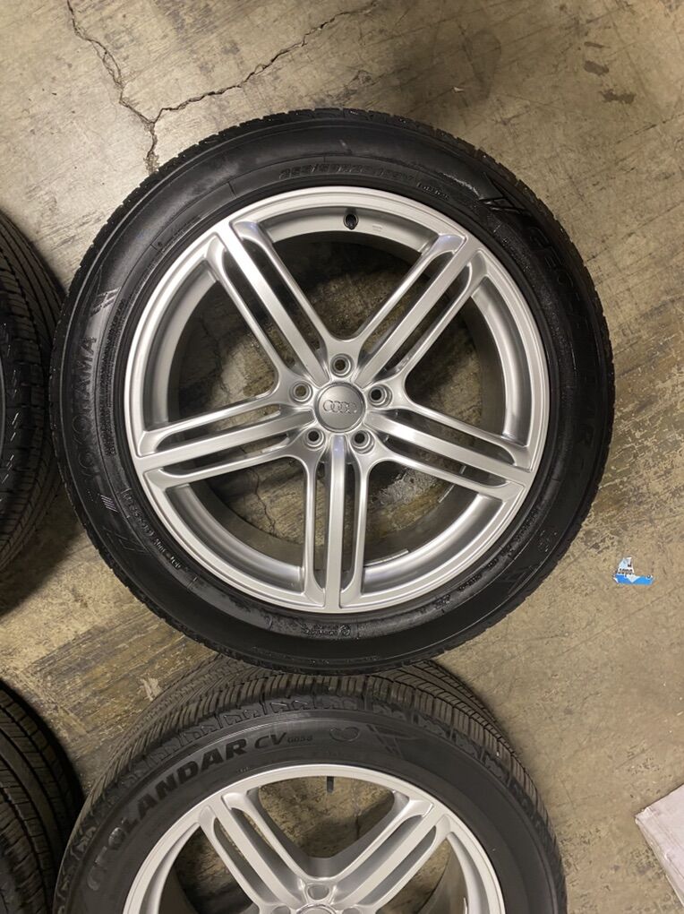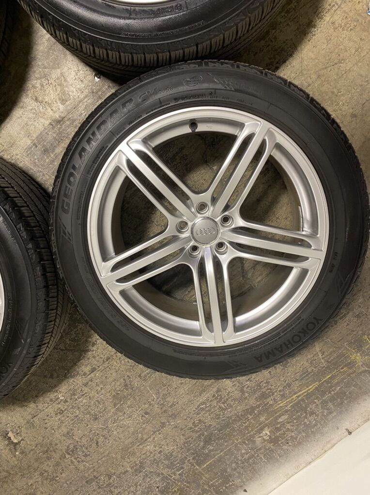 OEM Audi 20” wheels and matching Yokohama Geolandar CV tires with 8/32 tread. Just balanced. Fit Q5/SQ5