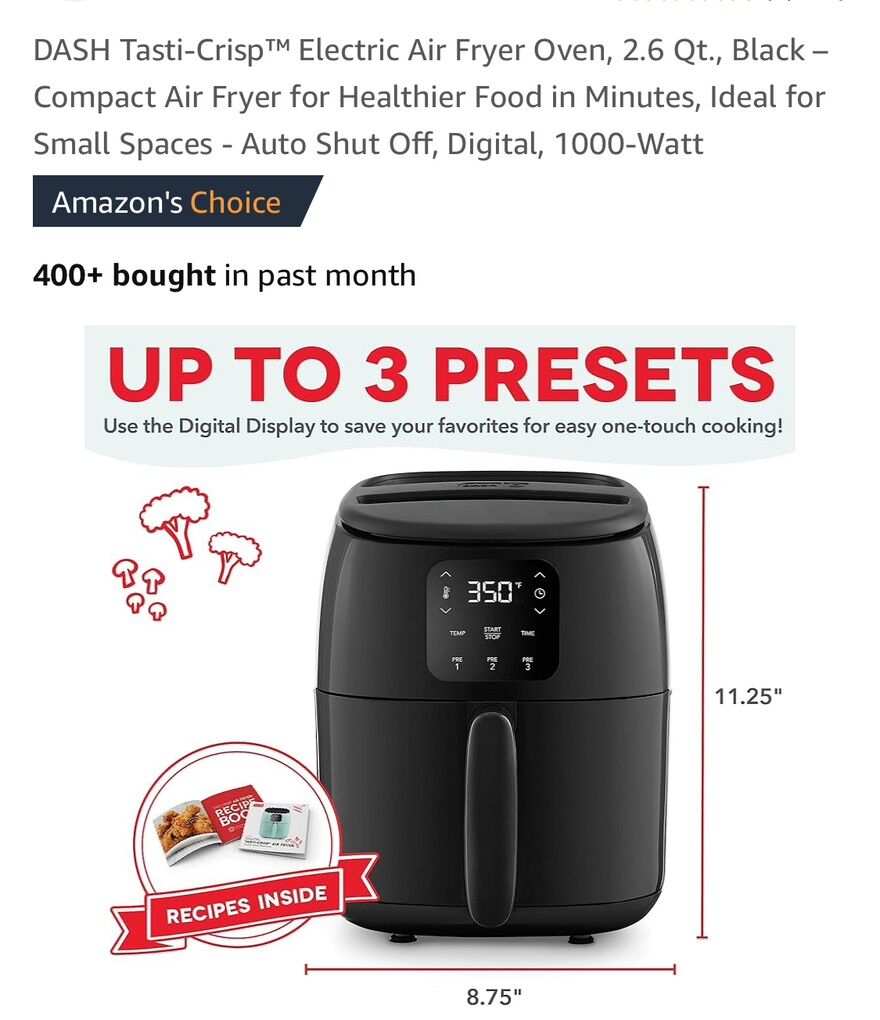 Dash Tasti-Crisp Air Fryer, 2.6 qt, Black, Brand New