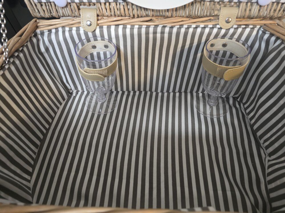 VenmoPicnic Basket includes plates, flatware, wineglasses, corkscrew, salt and pepper Shakers, and more.