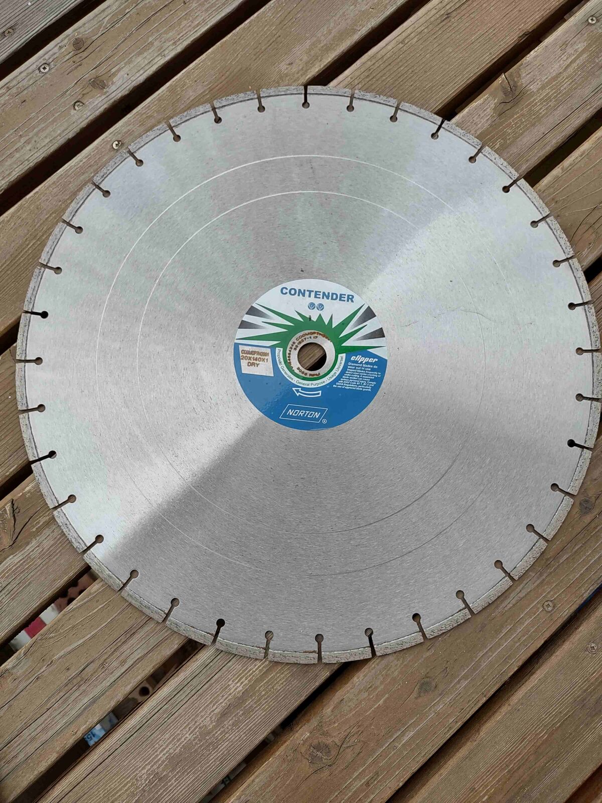 BRAND NEW 20" NORTON CLIPPER CONTEDER SAW BLADE, work for Concrete. Brick. Masonry. Block. Slate. Field Stone. Size is 20"x0.14x1". Sale $375.00. Cash only. Plese call (8010205-3309 or text.