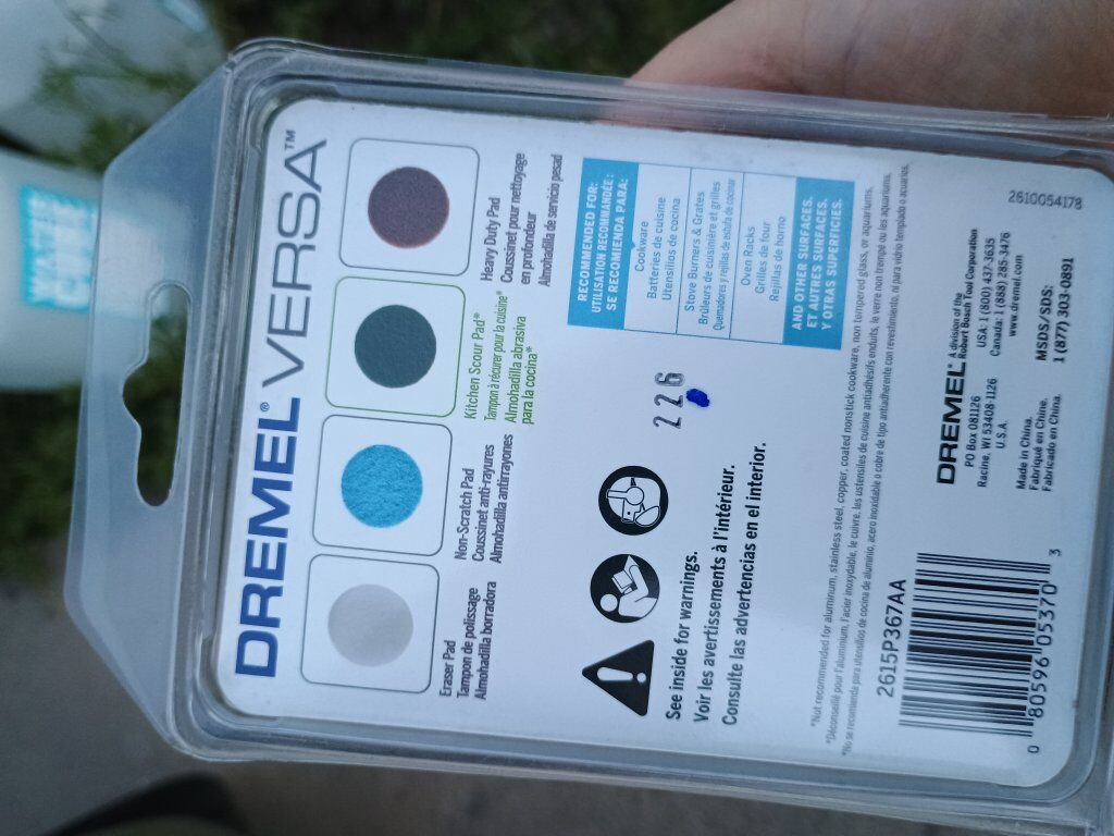 new in package 3 pack Dremel versa cleaning scrubbies. $6 cash. pickup in Ogden either at the North end of town near 5 points or South end of town by wsu.