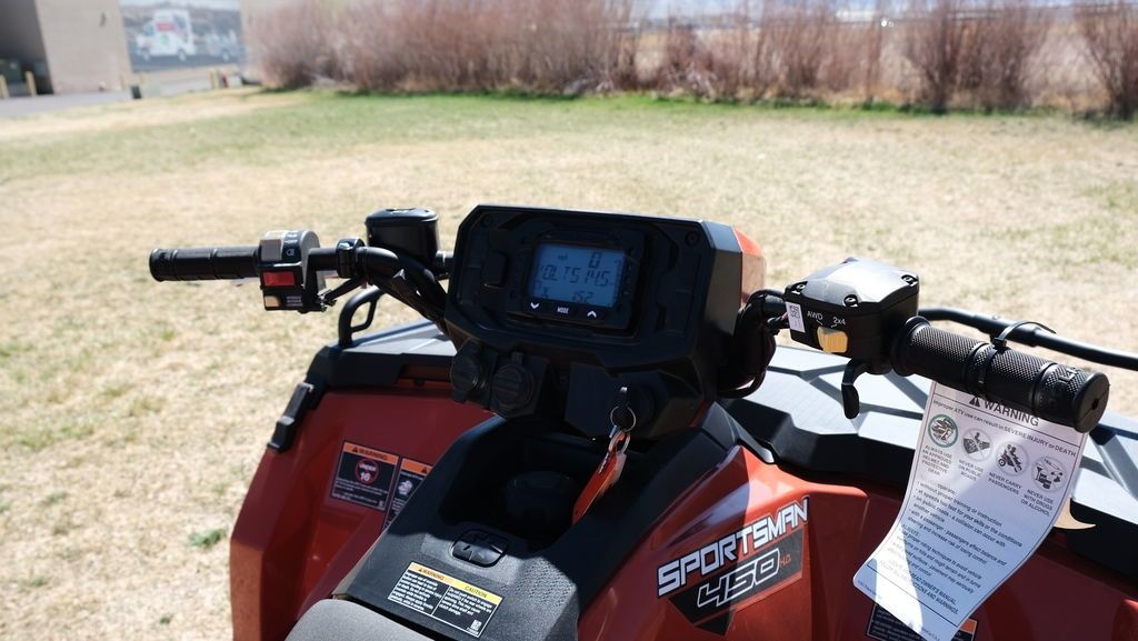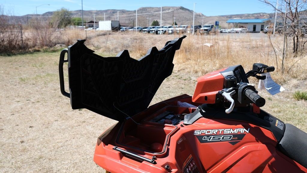 2025 Polaris® Sportsman 450 H.O. EPSSPORTSMAN 450 PACKS MORE INEquipped with industry-leading towing, ground clearance and 5 gallon storage, the 450 adds more capability for work or play.Features may include:STRONGRelentless, job-ready features for the daily grind.Improved Fit and FinishNew shifter close-off and better seat fitment providing overall improved showroom appeal and enhanced ride comfort.Upgraded Clutch SealingTake on more trails with confidence with improved clutch airflow to help keep water out.1,350 Lb. TowingPull trailers, and other vehicles, with confidence thanks to a work-ready towing capacity.25" 6-Ply TiresEndure rough terrain with puncture-resistant walls and 12" steel wheels.33 HorsepowerSolid power for all-day riding in difficult conditions—or for when you just want to let it rip.SMOOTHLegendary Sportsman suspension delivers the smoothest ride to absorb bumps of all sizes.SuspensionIndustry-leading Sportsman suspension delivers more traction than the competition and helps you ride over even bigger obstacles.On-Demand AWDThe industry's fastest-engaging On-Demand AWD. Only Polaris delivers instant power when the slightest wheel spin is detected.Trail-Taming ClearanceEquipped with 11.5" of ground clearance to help you travel smoothly over rough terrain.Unmatched TravelNo one can match our suspension with a class-leading 9450 STANDARD FEATURES33 HP Engine48" Width11.5" Ground Clearance8.2"/9.5" Front/Rear Suspension Travel25" Tires with 12" Steel Wheels1,350 Lb. Towing Capacity with Factory-Installed Hitch ReceiverCombined 270 Lb. Front & Rear Rack CapacityPre-Wired for Handwarmers and WinchRIDE COMMAND+ with Accessory PurchaseEPS TRIM INCLUDES:Multi-Select Electronic Power SteeringFront Rack ExtenderRear Rack Extender