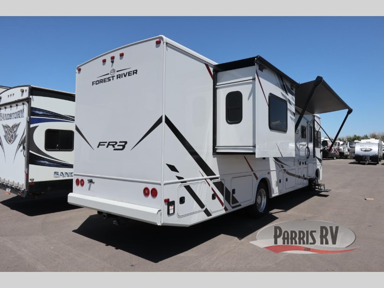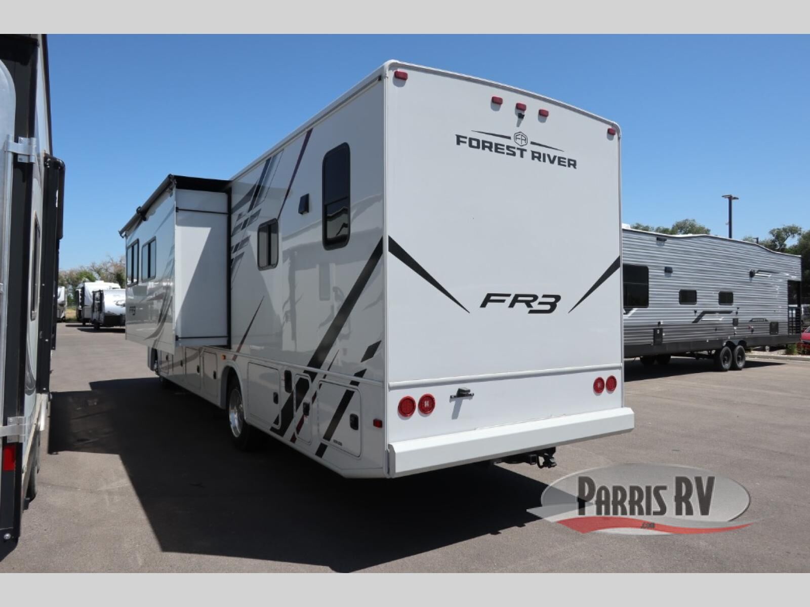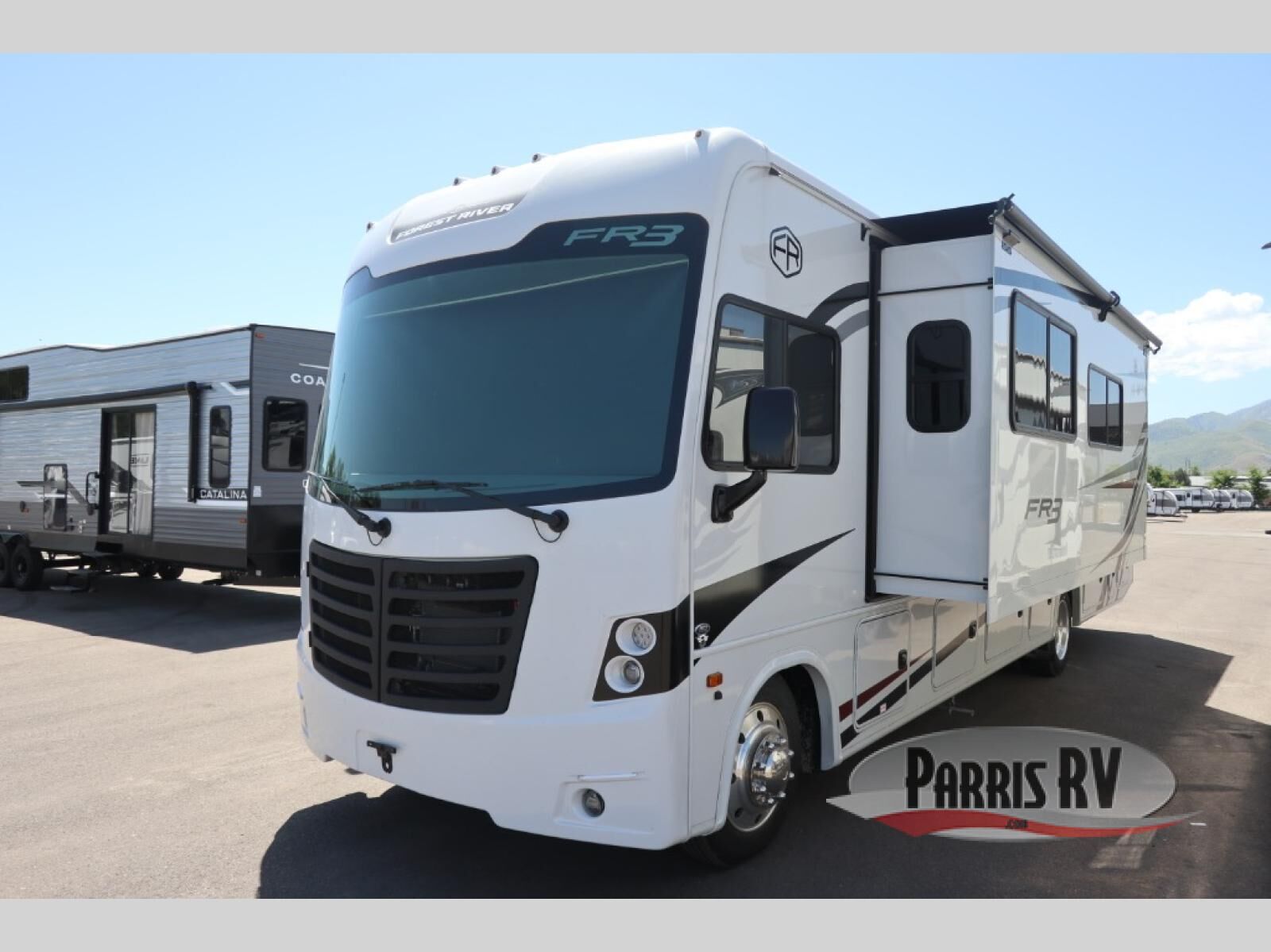 With each FR3 Class A gas motorhome by Forest River, you will find an easy-to-drive coach with a spacious interior allowing you to gather with friends and family with convenience and style found throughout! Each is built with vacuum-bonded construction, a one-piece fiberglass roof with extended rain spouts, a steel firewall and A-pillar extension, Bi-LED headlamps and lower LED fog lights, and grey Rotocast storage boxes with drains. Inside, you will enjoy black hardware, appliances, plumbing fixtures, and a glass shower door frame. You will also find a stainless steel kitchen sink with a bamboo cutting board and roll-up dryer, heavy-duty full-extension ball bearing drawer guides, dual-access dinette storage with doors, and nightstands with charging stations to keep your cellphones ready for whatever is next. Make your selection today!