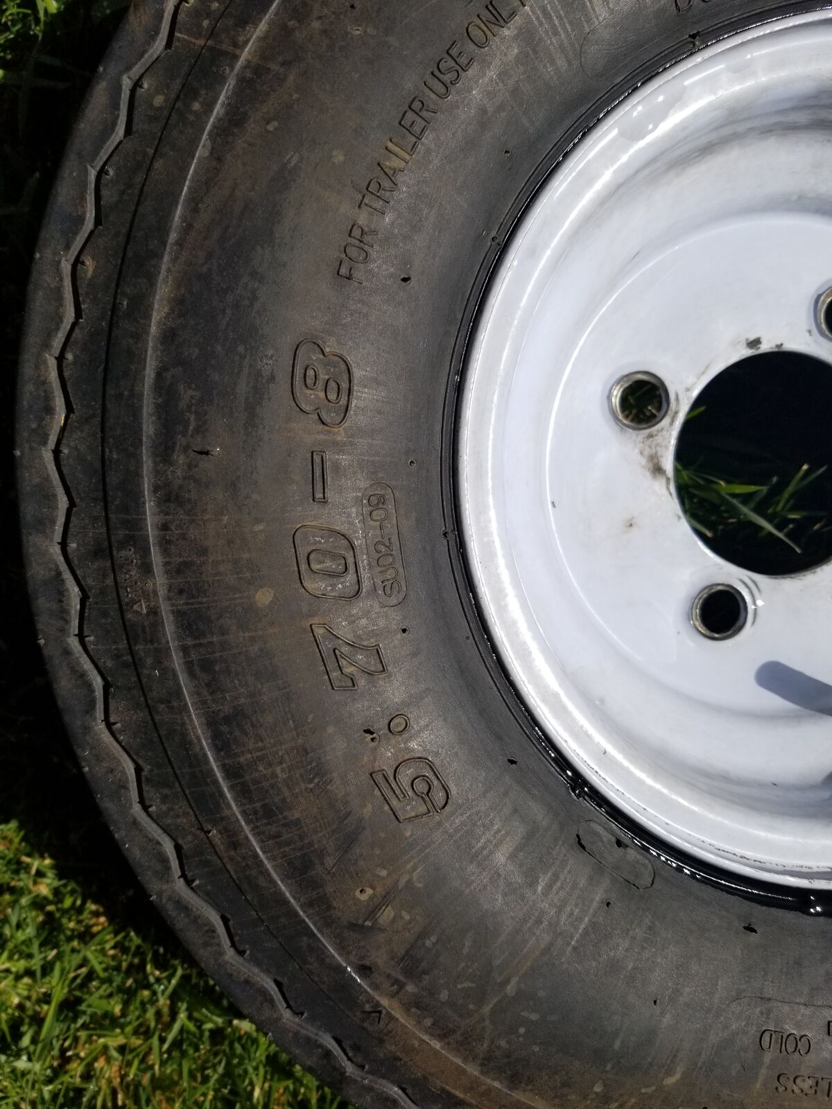 5.70 x 8 4 Lug, 4 Hole Pattern, 2 Tires with rims.