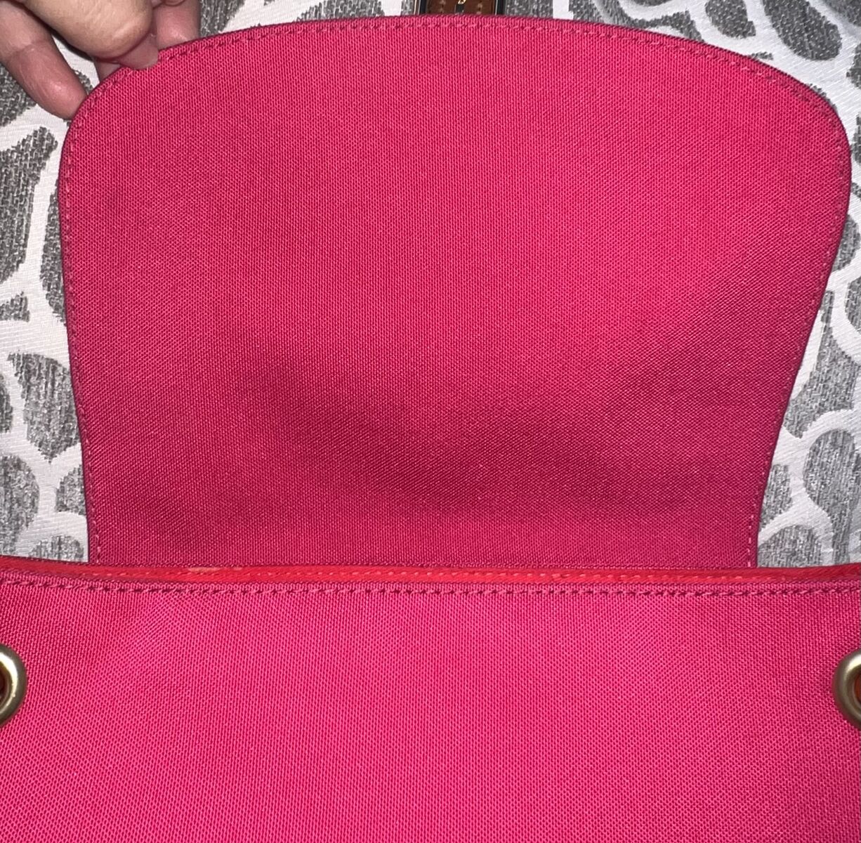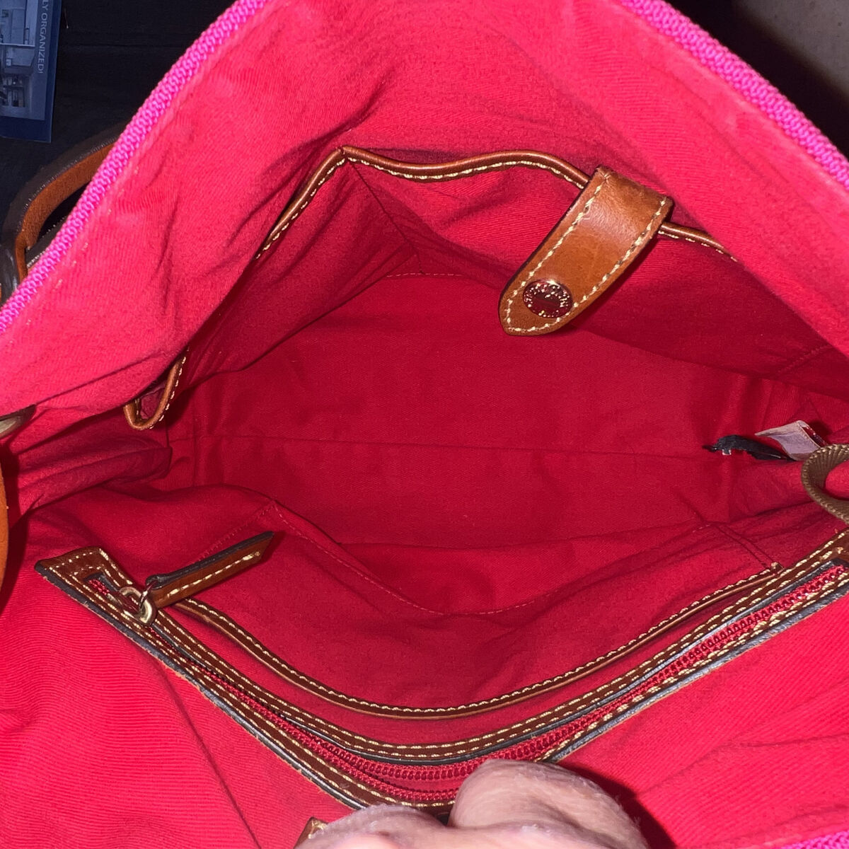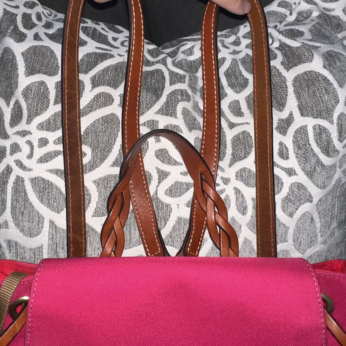 VenmoThis Dooney & Bourke Nylon Flap Backpack Bag is in like new condition. Very hard to find in PINK! I only used it once, and it's been in my closet since. I have too many bags and must downsize. Originally $288 when new, I bought it on sale for $138. Pink is no longer available. Only a couple of things to mention... the magnetic metal back snap has slight scuffing from the top snap making contact when opening/closing - normal for a magnetic closure. The bottom of the bag has slight marks that I haven't tried to get out. Looks like a watermark. I added a pic, but it's hard to see in photos.