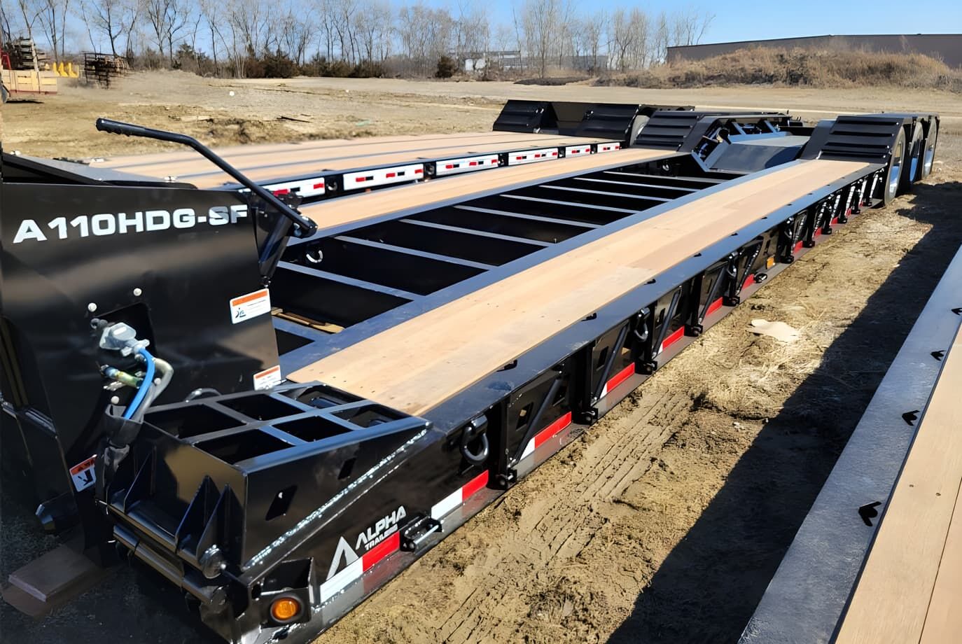 The ALPHA HD 110HDG-SF is a high-performance hydraulic detachable gooseneck (HDG) trailer designed for heavy-duty hauling. With a 110,000 lb capacity and a 10-foot-wide frame, this trailer is built for efficiency, durability, and maximum load distribution.