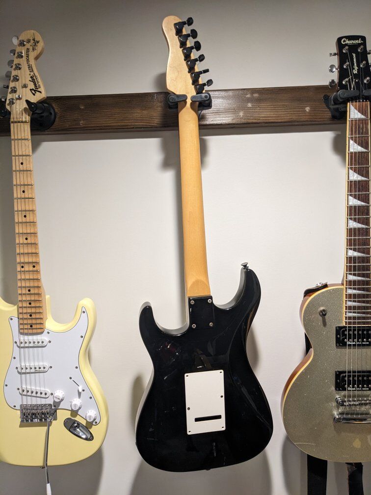 it looks very nice. the scratches aren't visible from more than a couple feet away. I think it looks like an inverted Adrian Smith or an HSS Janick Gers. Definitely Iron Maiden vibes in my opinion.