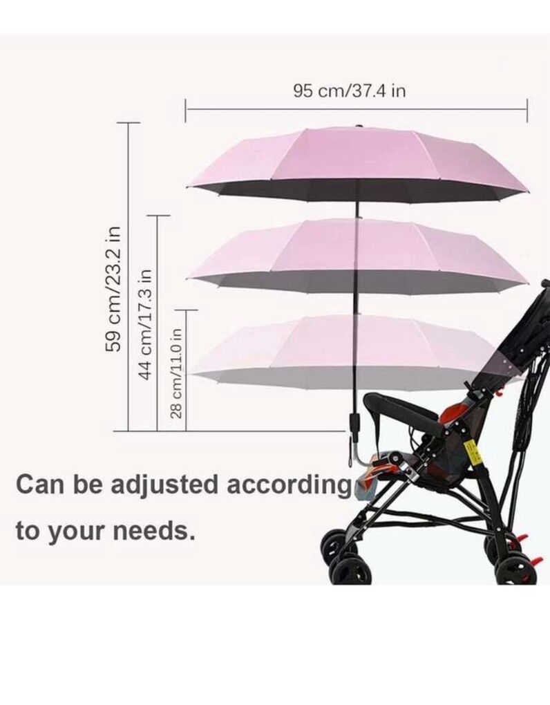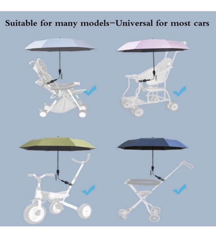 UV protection: 99% UV-resistant,This stroller umbrella is made of high-density polyester and silver-plated to protect your baby's delicate skin and eyes on sunny days. Specifications: The opening diameter of the stroller umbrella is 95cm. It includes a removable clamp, We come with a storage bag, our stroller umbrella can be folded up and easy to carry when you don’t need it. High Quality: This infant car seat sunshade protection is made of high density w 360° adjustable umbrella: The stroller sun shade has an Angle adjustment button. Press the adjustment button to adjust the Angle of the stroller sun shade. The elastic steel can bend 360 degrees and the umbrella can be adjusted in any direction. WIDE USE AND PERFECT AFTER-SALES: The clip-on umbrella portable for your outdoor activities, such as sports viewing, games, walking on the beach, spending the day on the golf course or patio. Please contact us if you have any questions or dissatisfied about our stroller umbrella.