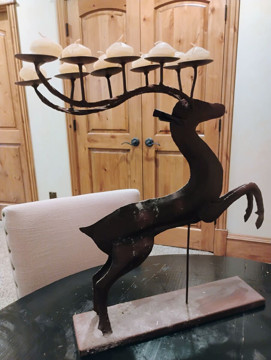 VenmoPrancing deer on stand. 10 candles included. 23 inches tall. 16 inches wide. Purchased at Pottery Barn. Will meet for delivery. No codes.