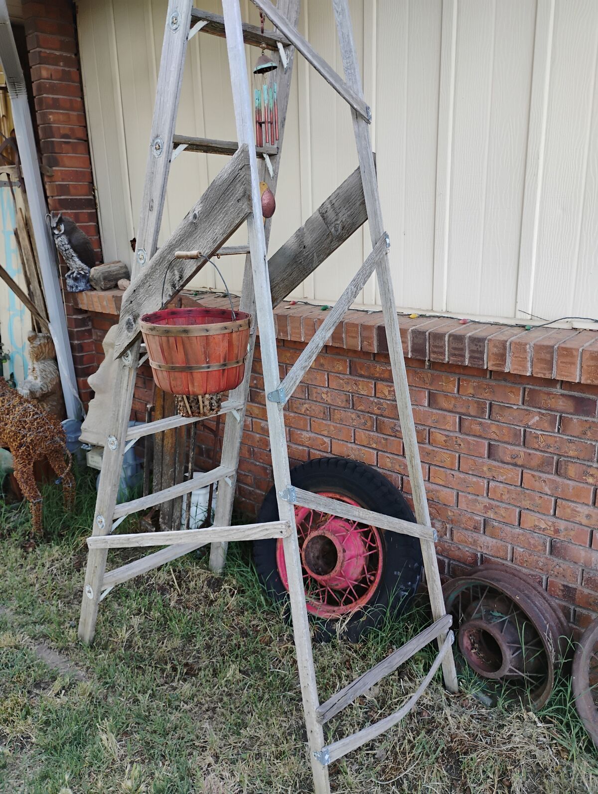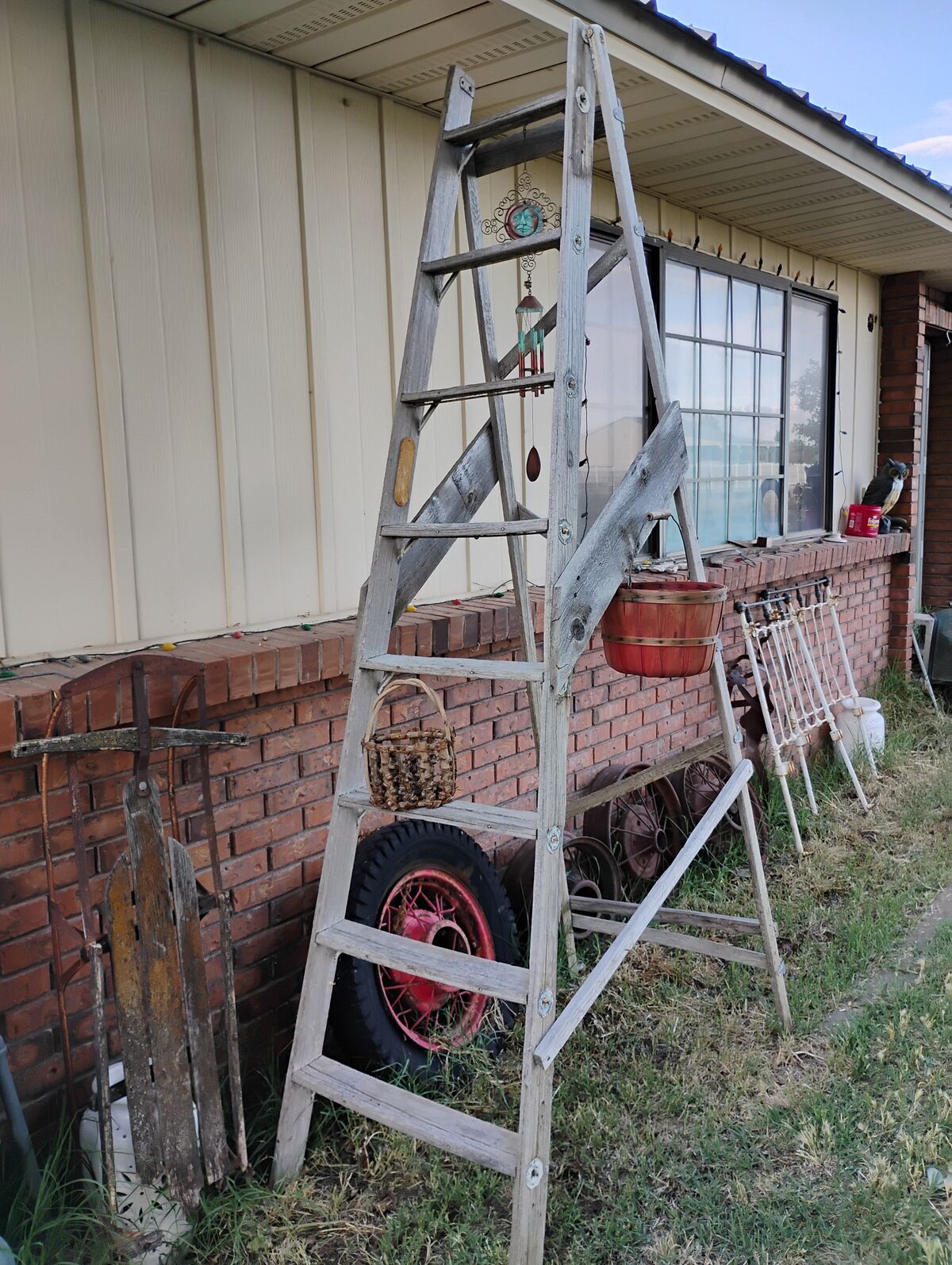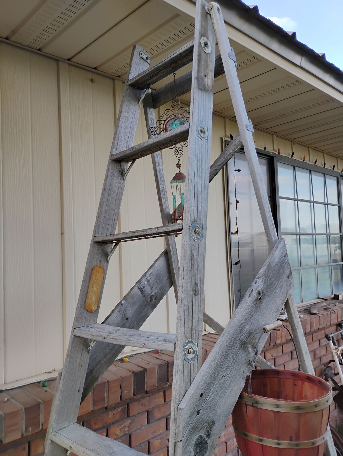 Venmo98 Inch Tall. 26 wide at bottom 15 at top. About 48 deep Set up. Great display using the steps for shelving. Hanging quilts, Nick nacks, what ever. Great looking yet solid. Hard size to find.