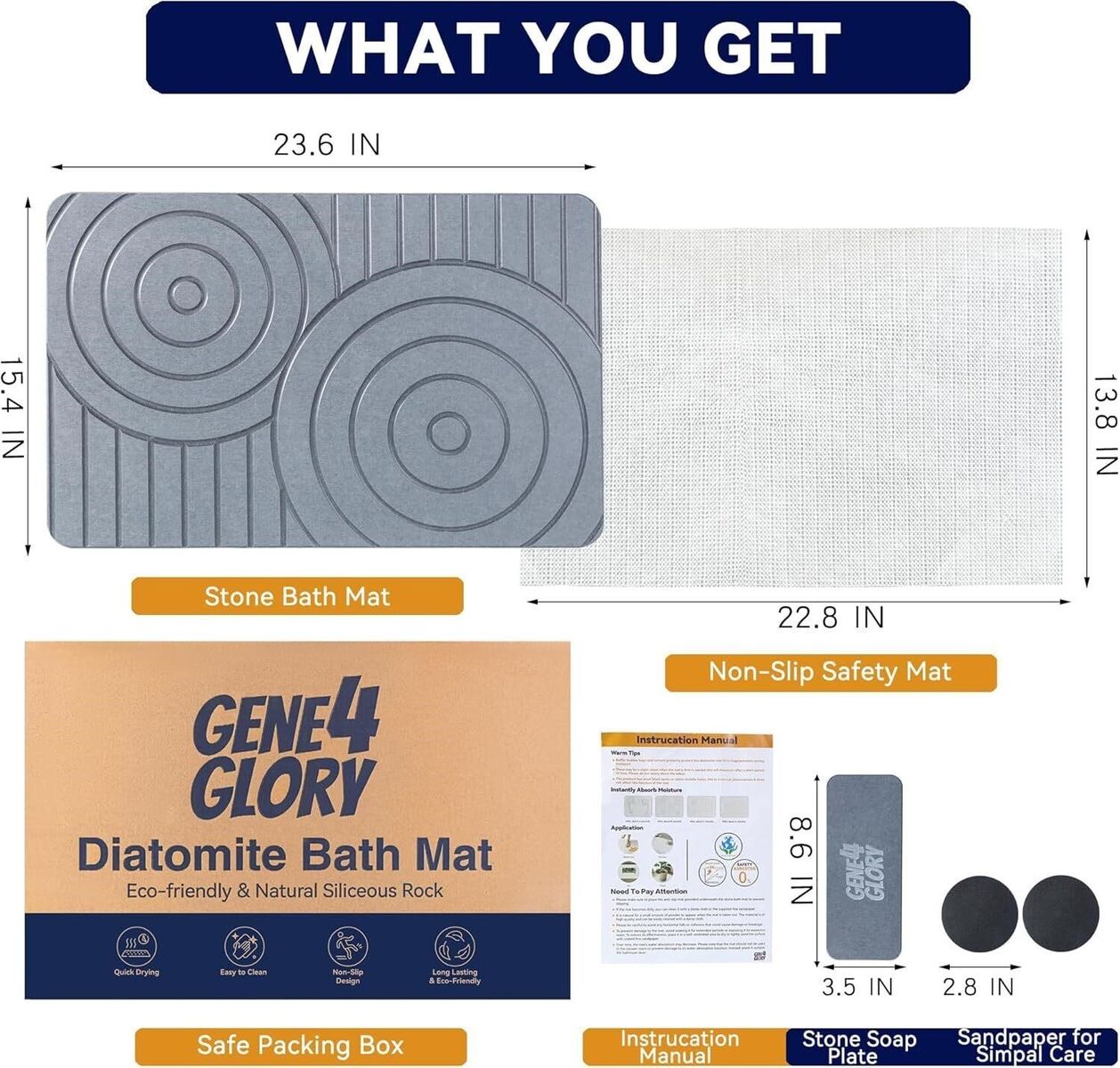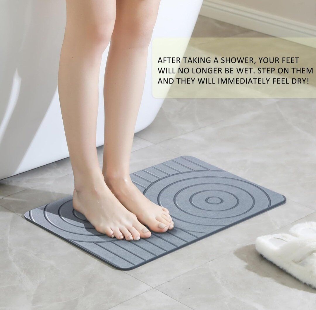 Quick-drying & ultra-absorbent. Made from natural diatomaceous earth. Non-slip surface + bonus rubber pad for added grip. Easy to clean – rinse or sand as needed. Durable & eco-friendly. Size: 23.6" x 15.4" (1.3ft x 1.9ft).