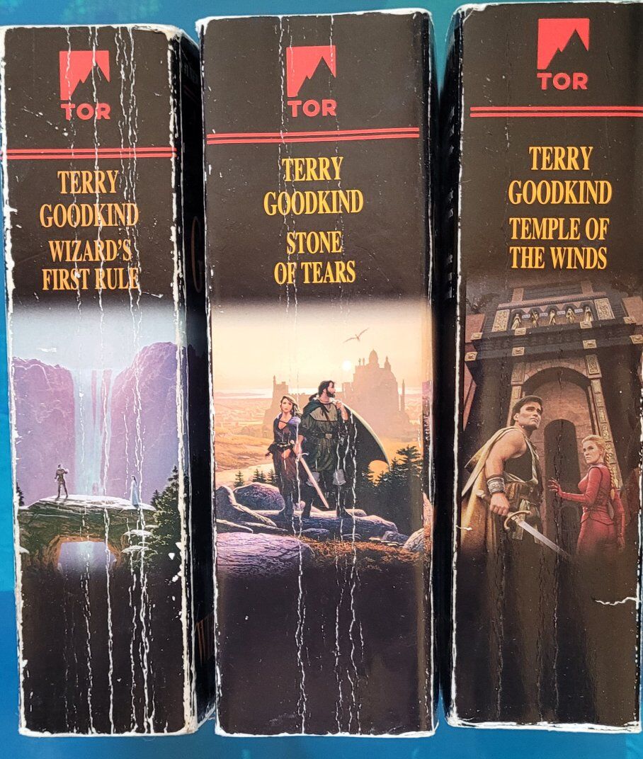 Terry Goodkind Sword of Truth includes: Wizard's First Rule, Stone of Tears, Blood of the Fold, Temple of the Winds $5 ea They were my son's so his name is on the bottom