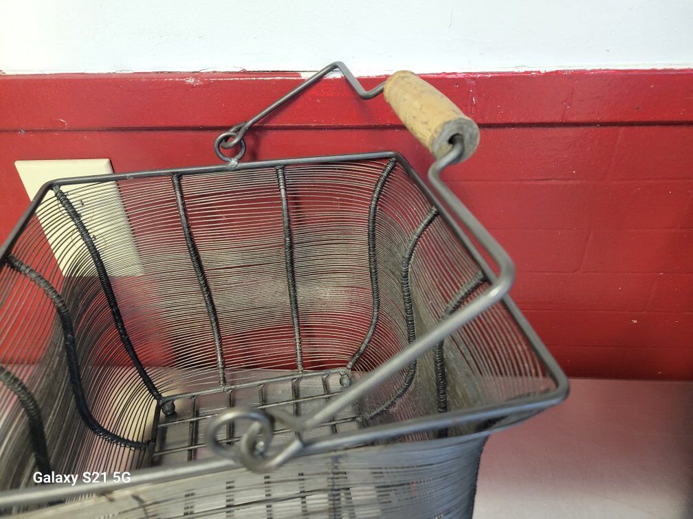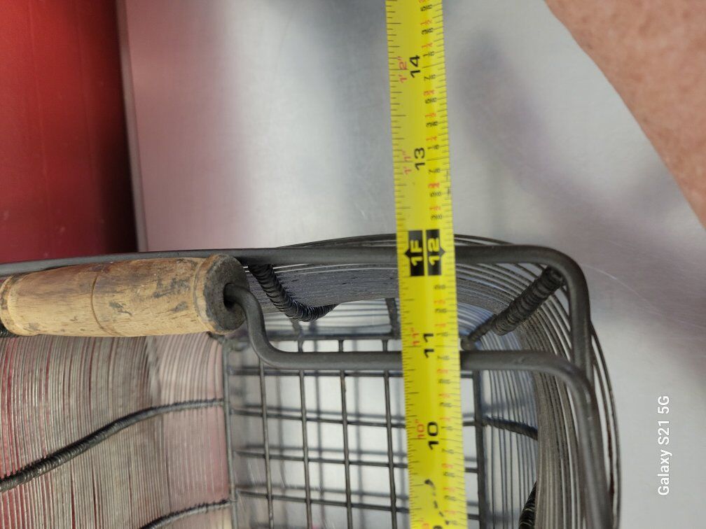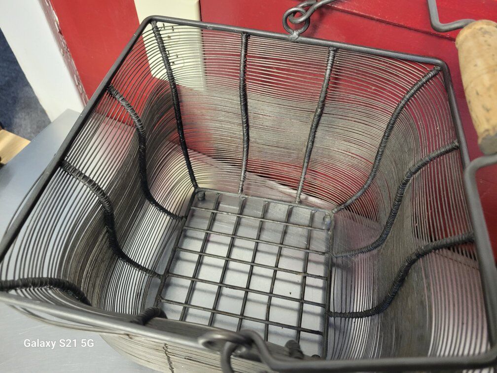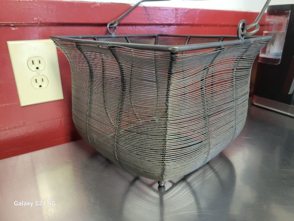 Metal Decoration Basket, solid and medium weight, with a wooden handle. Measurements are in the photos. Was use as porch decor so has some dust and dirt in some small sections. Item in Provo, cash and pick up only, sry no venmo, please see my other listings, thanks