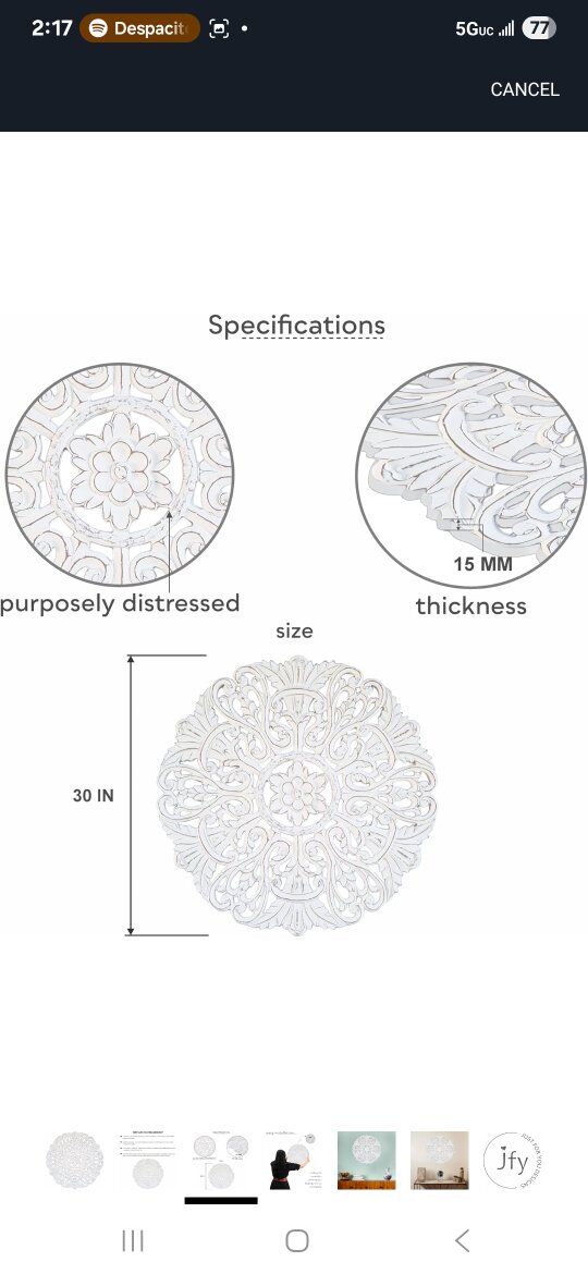 Camillo 36"x36" Carved Round Medallon. New still in box.