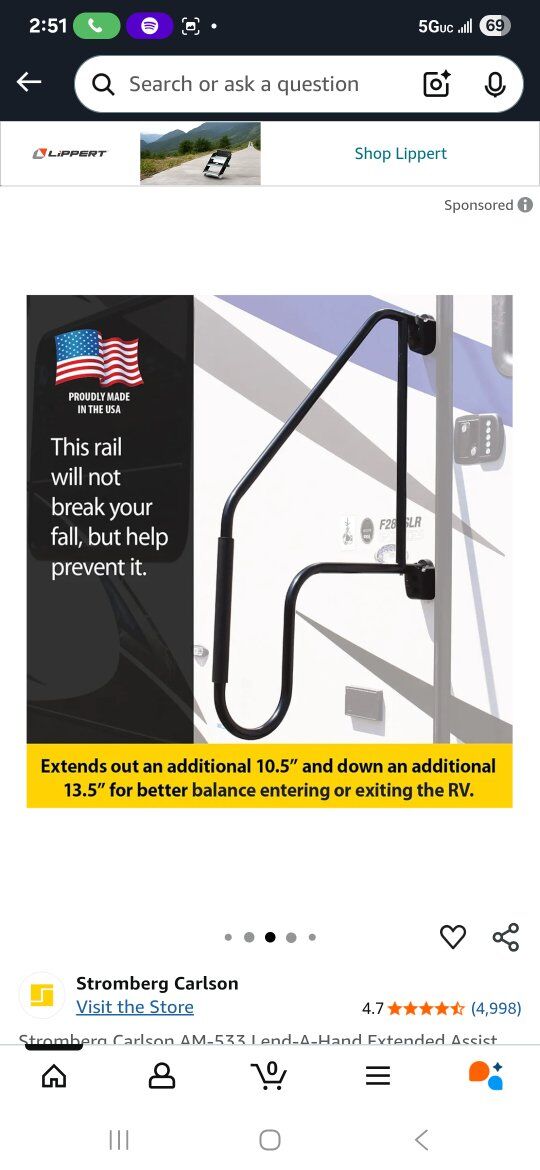 Stromberg Carlson AM-533 Lend-A-Hand Extended Assist Rail - RV Handrail, RV Handle Grab Bar by Door, Camper Hand Rail, RV Step Handrail, Trailer Door Handle, Grab Handle, 37" Overall Drop, Black
