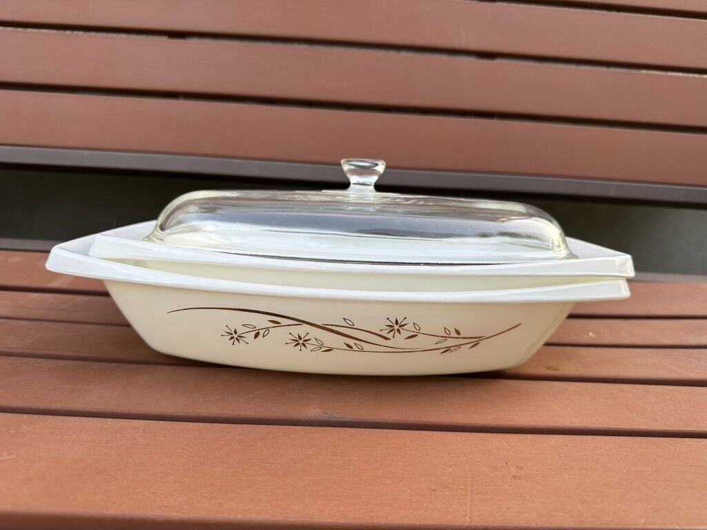 VenmoGreat condition - 2 vintage Pyrex Golden Honeysuckle Casserole Dishes, with one lid.