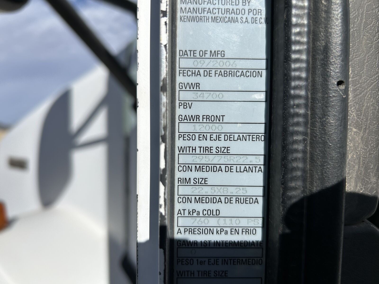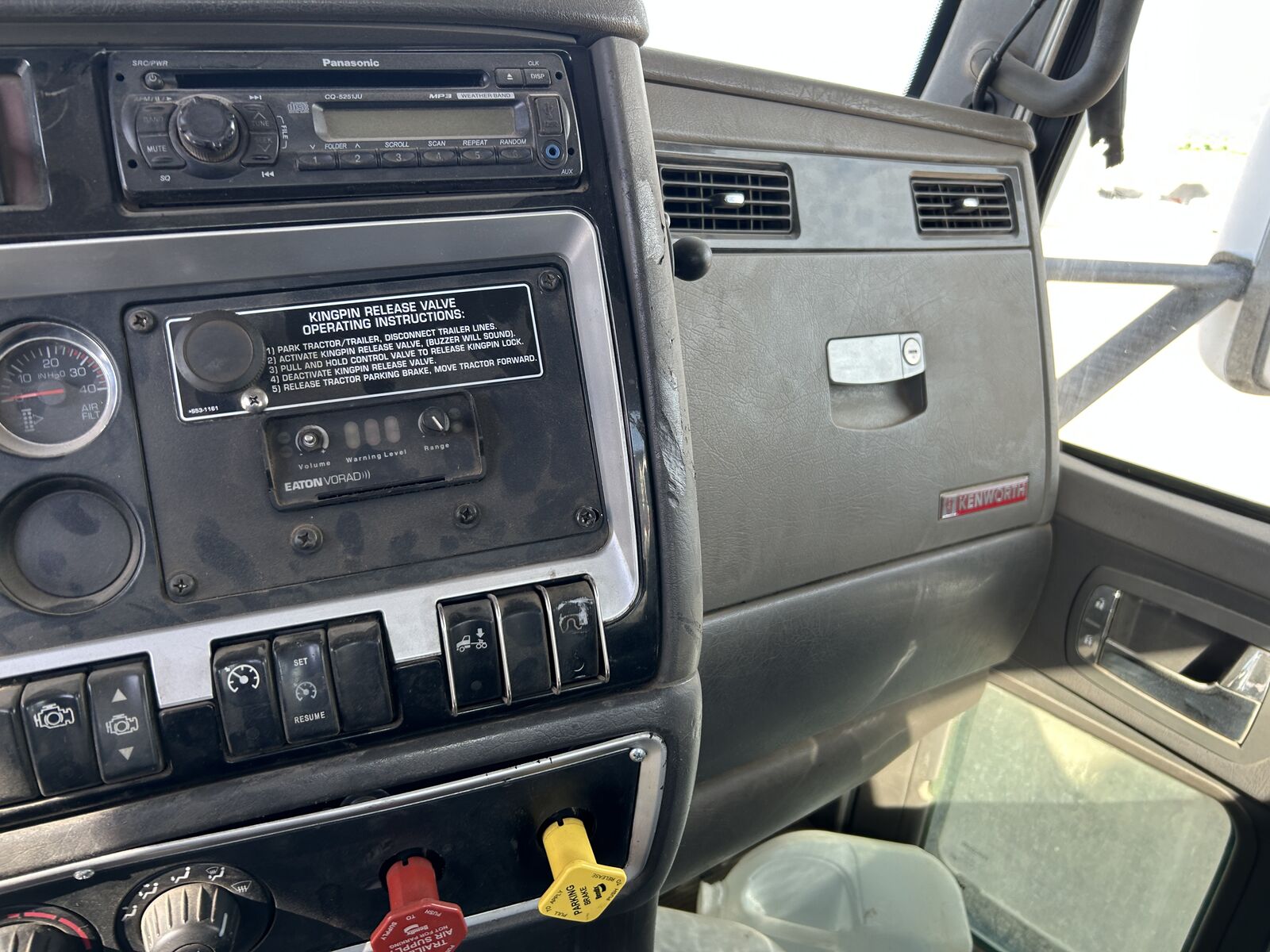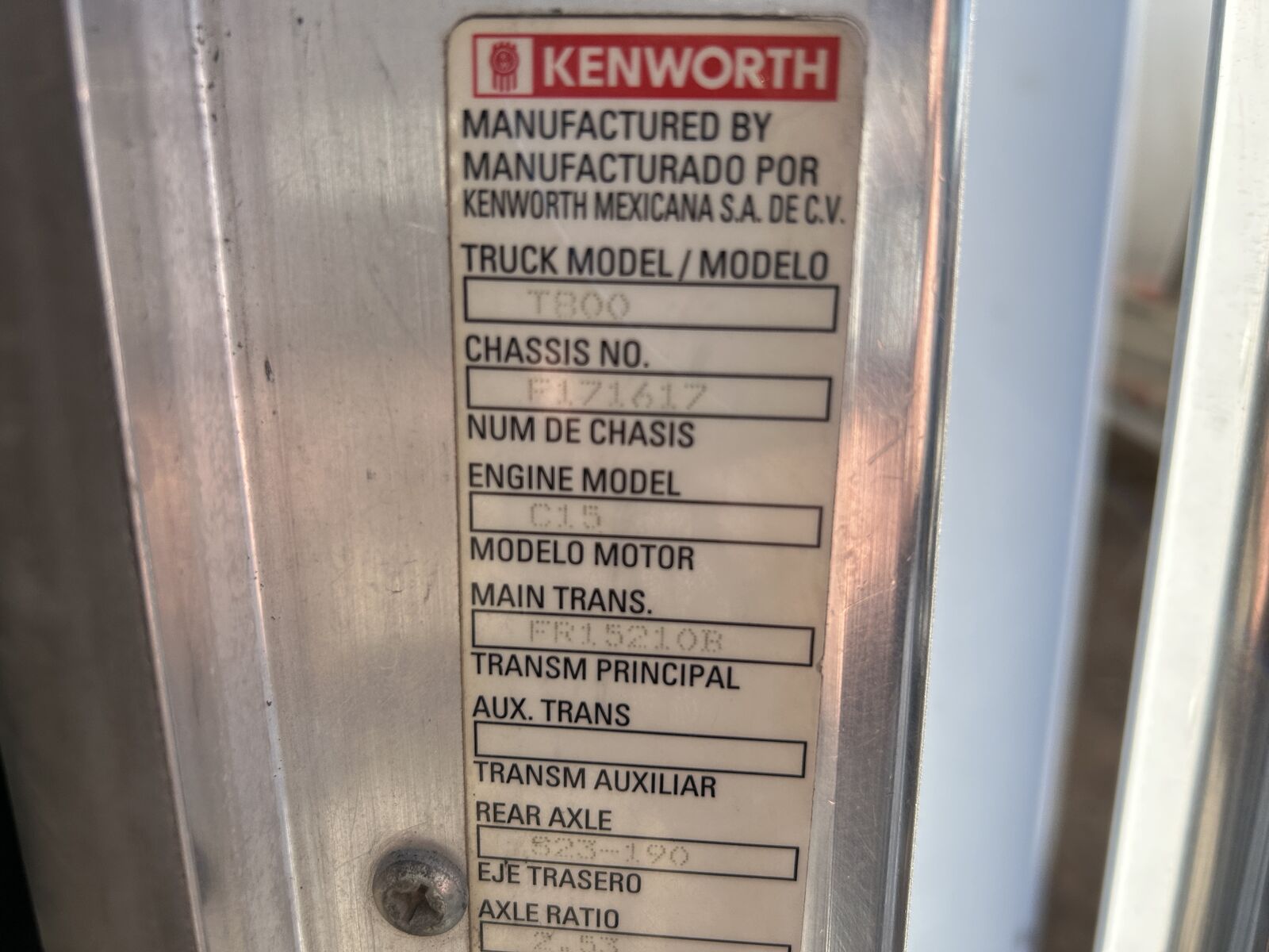 007 Kenworth T800 Single Axle Day Cab with CAT C15 Acert Engine 435 HP, Eaton Fuller 10 Speed Transmission, 2.53 Ratio, 3 Stage Engine Brake, Air Ride, 12000# Front Axle, 22700# Rear Axle, Fixed 5th Wheel, P/S, A/C, AM/FM CD Bluetooth, Heated Mirrors, Cruise, Traction Control, Tilt/Tele Wheel, Power Passenger Window, Peep Window, Dual Aluminum Fuel Tanks 200 Gal/100Gal, Steel Wheels, Drum Brakes