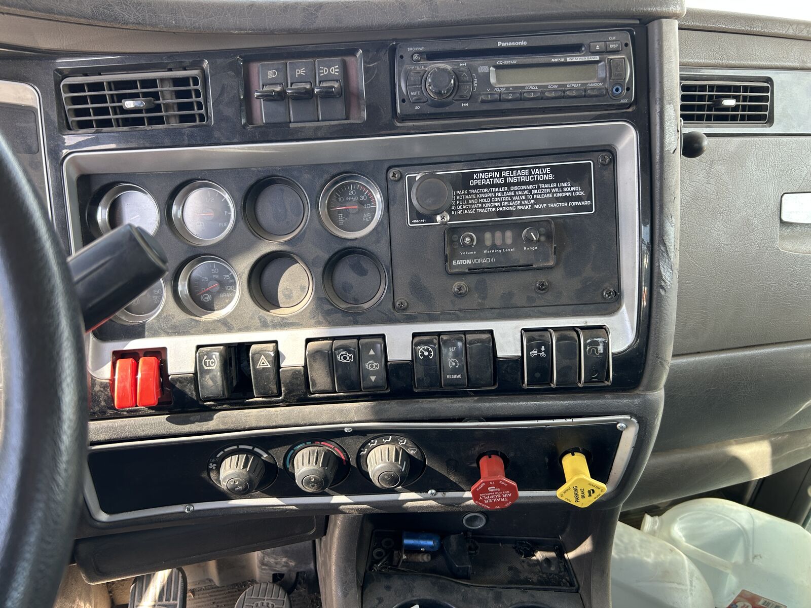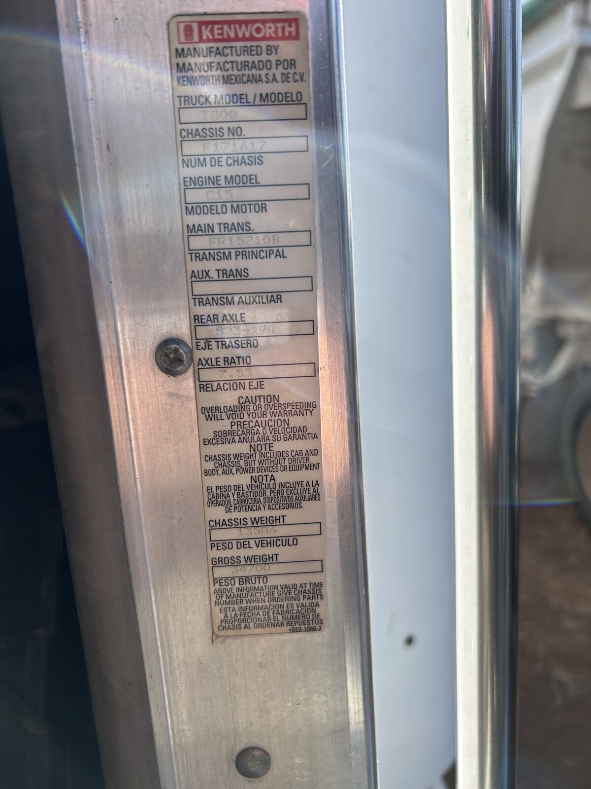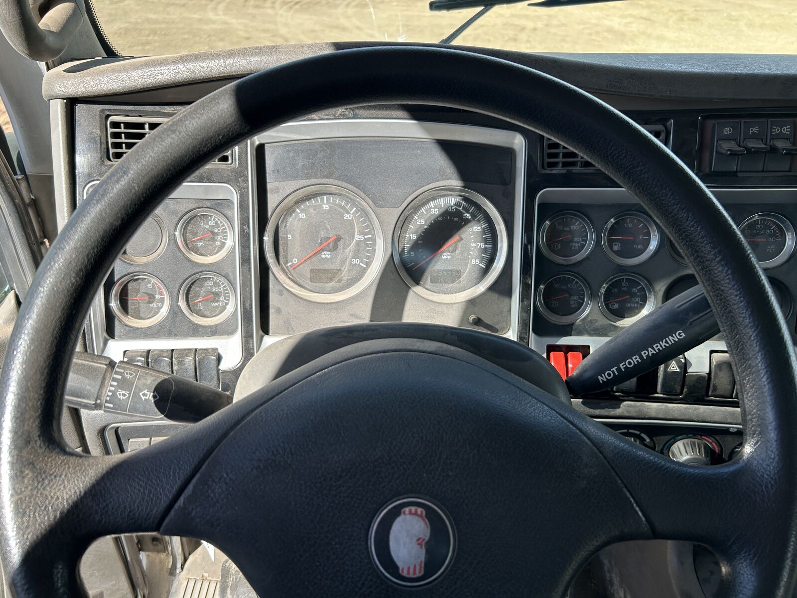 007 Kenworth T800 Single Axle Day Cab with CAT C15 Acert Engine 435 HP, Eaton Fuller 10 Speed Transmission, 2.53 Ratio, 3 Stage Engine Brake, Air Ride, 12000# Front Axle, 22700# Rear Axle, Fixed 5th Wheel, P/S, A/C, AM/FM CD Bluetooth, Heated Mirrors, Cruise, Traction Control, Tilt/Tele Wheel, Power Passenger Window, Peep Window, Dual Aluminum Fuel Tanks 200 Gal/100Gal, Steel Wheels, Drum Brakes