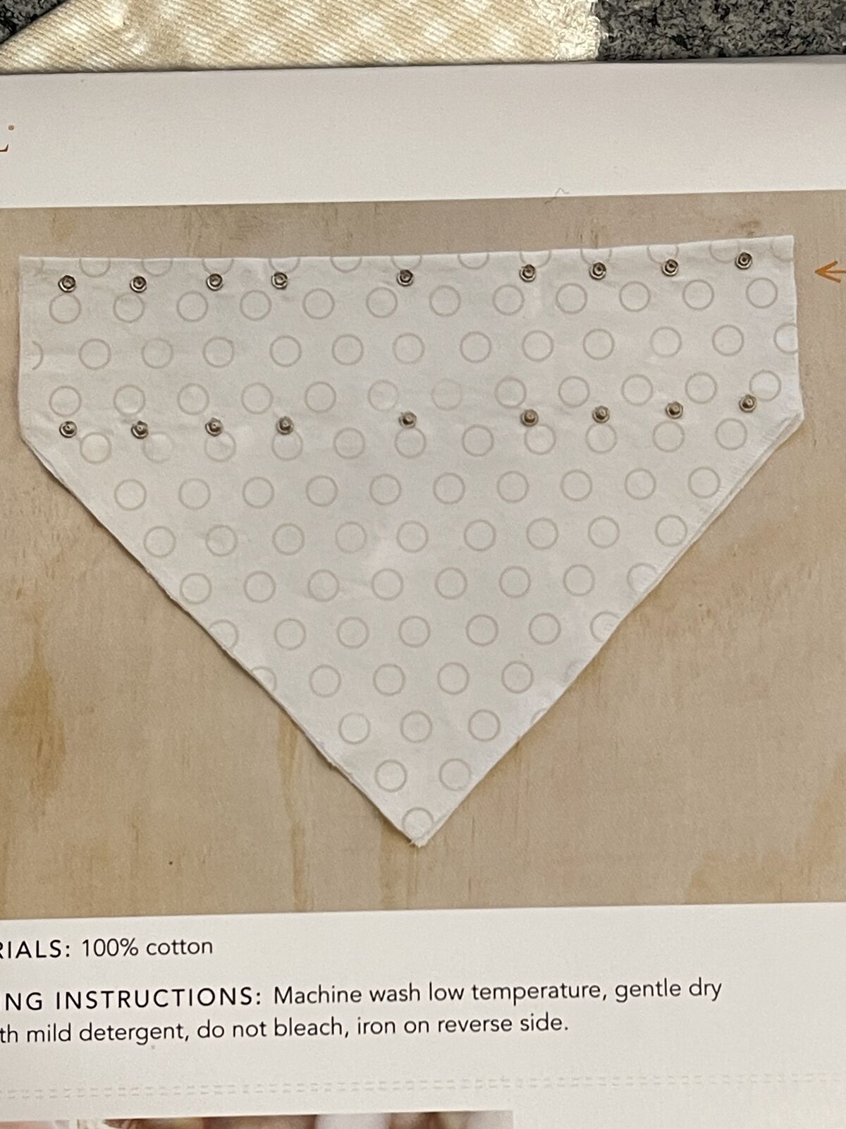(New) unopened package of two, adjusts to neck or leash size, machine washable cotton, snap attachment design. Back stock 9 remaining! Add pet's name for $2 more = $15 total.