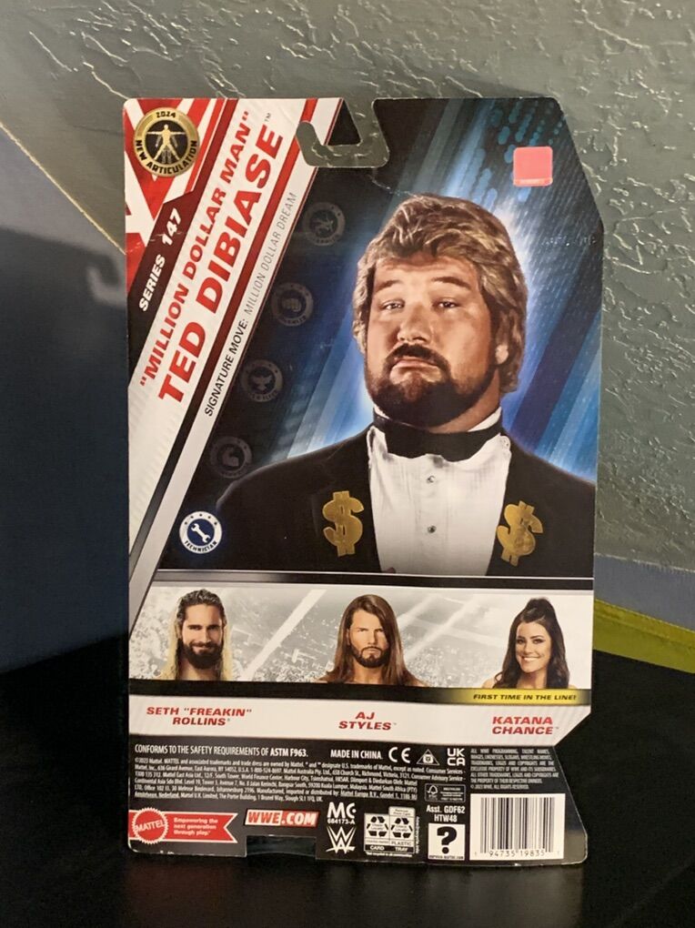 ApplePayWWE Ted DiBiase CHASE Basic action figure brand new in the box, box is in good condition, has a small crease on the back at the top. Limited CHASE with green suit.