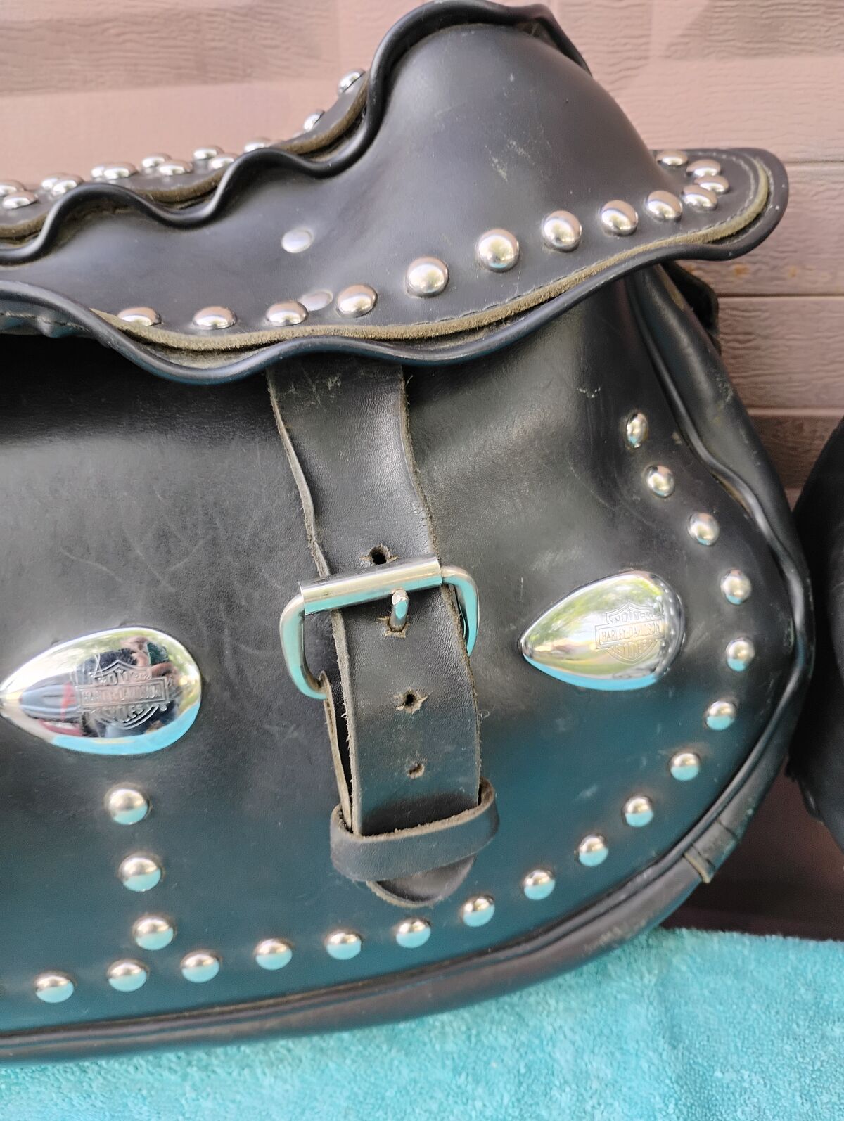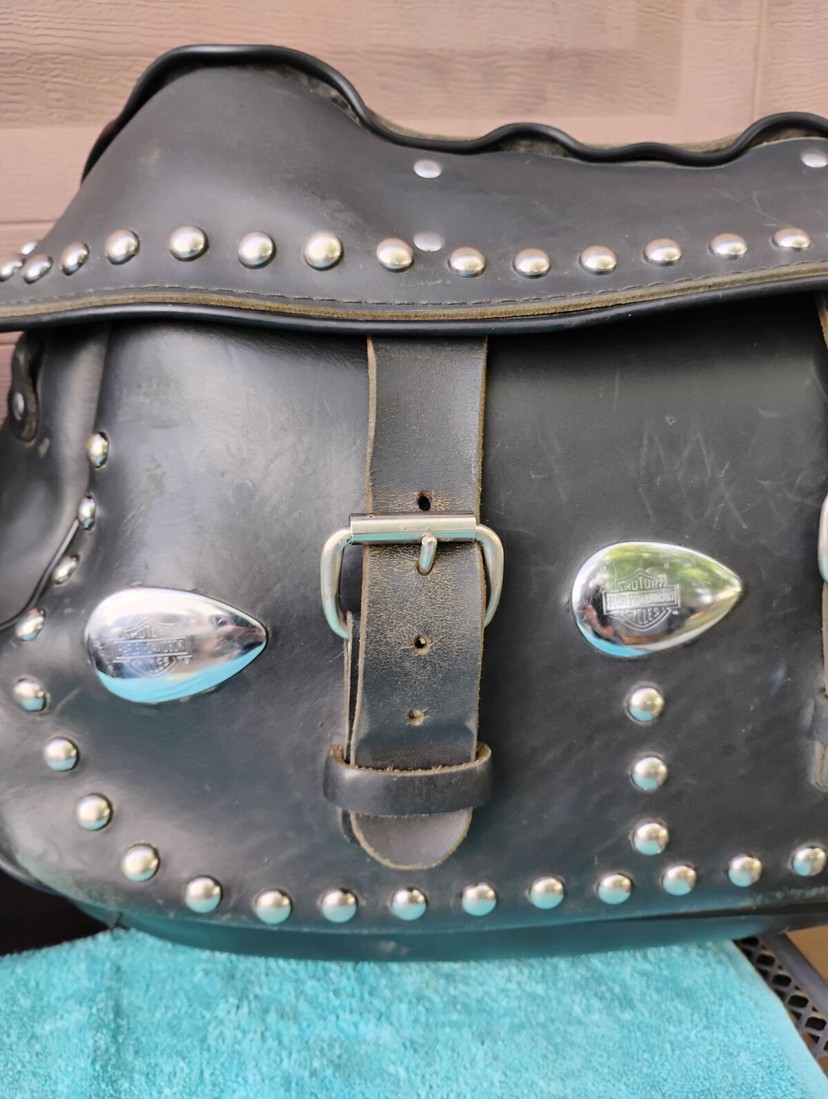 VenmoGreat vintage look. All leather and metal straps and hooks. No plastic clips. 3 Harley Davidson badge's on each bag. No mounting hardware. Just the bag's. Even look great on a rat rod.