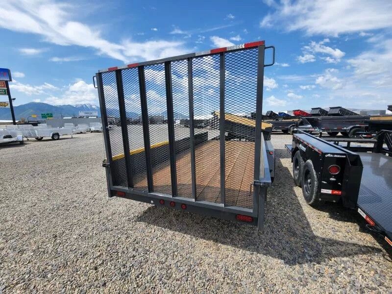 Stock Number: WT2029 Standard Features BRAKES: Self-Adjust Electric Drum Brakes COUPLER: 2-5/16" - A-Frame CROSS-MEMBERS: 2 1â2" x 2 1â2" x 3/16" Angle FRAME: 2"x 4"x 1â8" Tube FENDERS: 1â8" Diamond Plate FLOOR: 2" x 10" Oil Treated Lumber HOIST: Hydraulic Cylinder LOADING STYLE: 5' Stand Up Ramp LIGHTS: DOT Approved LED JACK: 7,000 lb Drop-Leg TIE DOWNS: Stake Pockets TIRES: ST235/80R16 Radial WHEEL COLOR: Black WARRANTY: 3 Year Limited Structural WASATCH TRAILER SALES - LARGEST TRAILER SELECTION IN UTAH Springville: (801) 528-1581 | 1180 S 2000 W, Springville UT, 84663 View More Inventory: www.wasatchtrailer.com