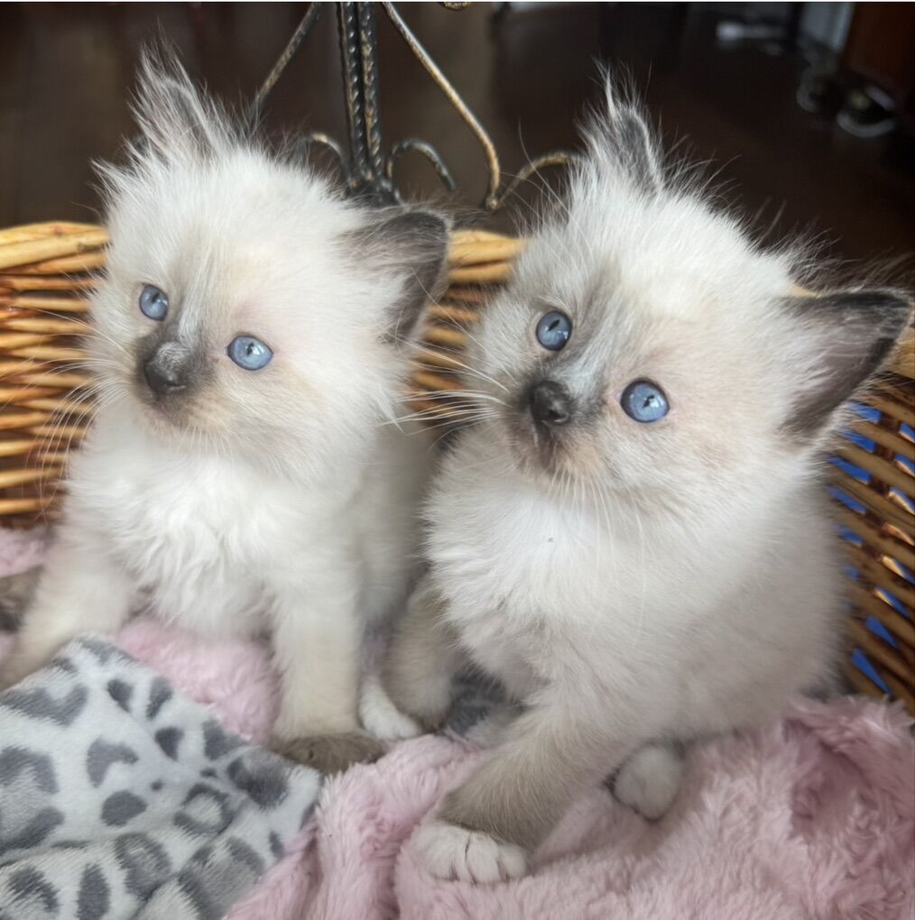 ALL Pics are of our kittens & their parents (Purebred Pevency our stud and our Purebred papered/TICA registered RAGDOLL females). _Our kittens are healthy, playful & intelligent & they fetch, leash-train & do tricks on their own (_can send videos including their tricks from our past litters!) They are incredibly loyal & cuddly, following you everywhere like little dogs. Unlike most Utah Ragdolls, which reach 25–35 lbs, ours stay smaller, about one-quarter that size. They are genetically smaller making them easier to hold, carry around and snuggle, while still living long, healthy lives. As a Licenced Clincial Social Worker I have used them in my practice for years--best anxiety reducers. Plus ours live for 2 decades--no diseases so far! Our kittens have made excellent emotional support animals as they help so much not only with anxiety, but other diagnoses as well. Ours are wonderful companions & adore children—**Look up this loyal human-like breed--amazing additions to any family--actual family members/companions.
