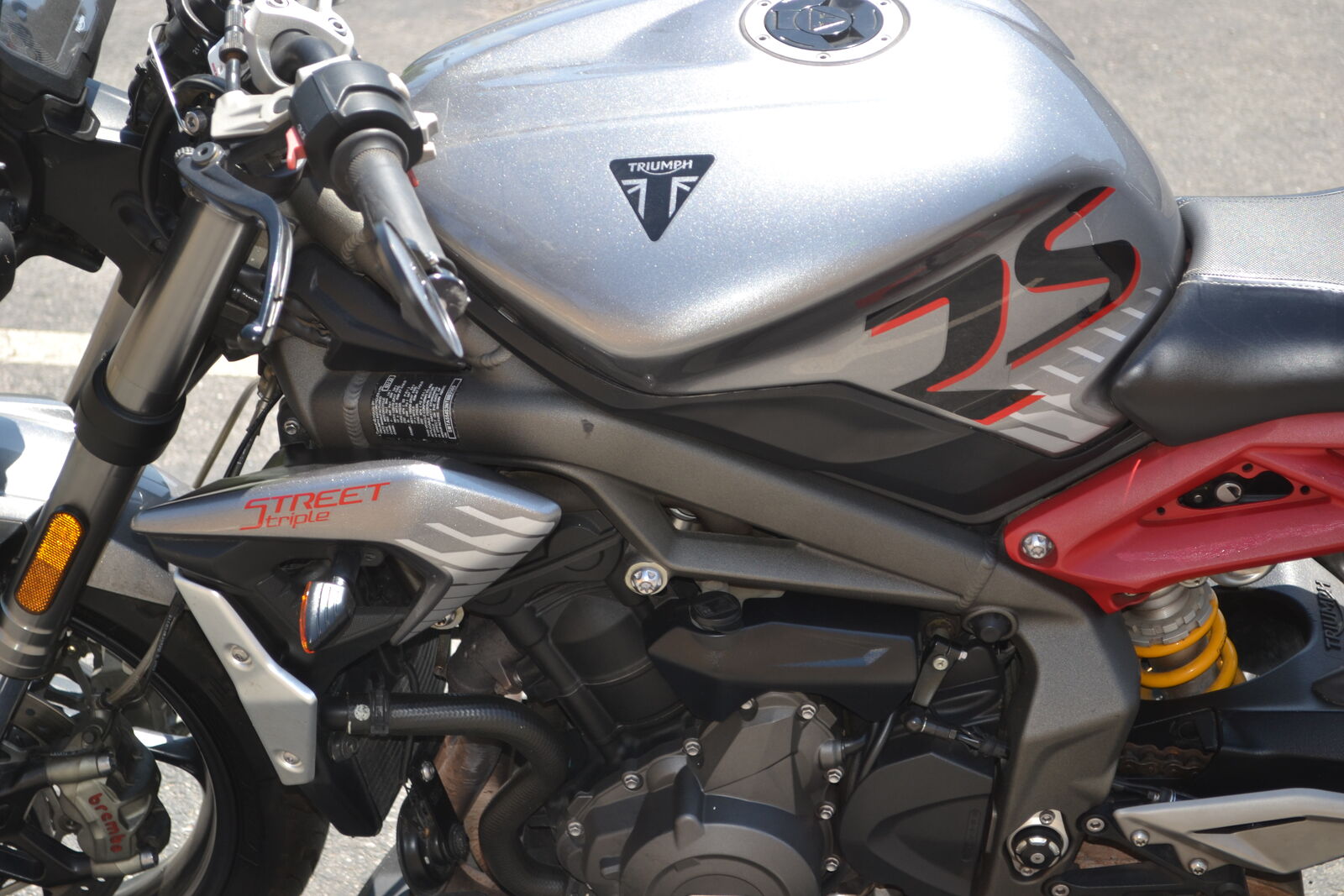 The 2022 Triumph Street Triple RS is a high-performance naked sportbike powered by a 765cc liquid-cooled inline-three engine, delivering 121 horsepower. Its lightweight aluminum frame, Showa Big Piston front forks, and Öhlins STX40 rear shock provide agile handling and precise control. Equipped with Brembo M50 brakes, a 6-speed transmission with Triumph Shift Assist, and a full-color 5-inch TFT display, it offers advanced features for spirited street and track riding. Ideal for riders seeking a blend of aggressive performance and modern technology in a versatile package. This one has just 16,900 miles and a clean title!