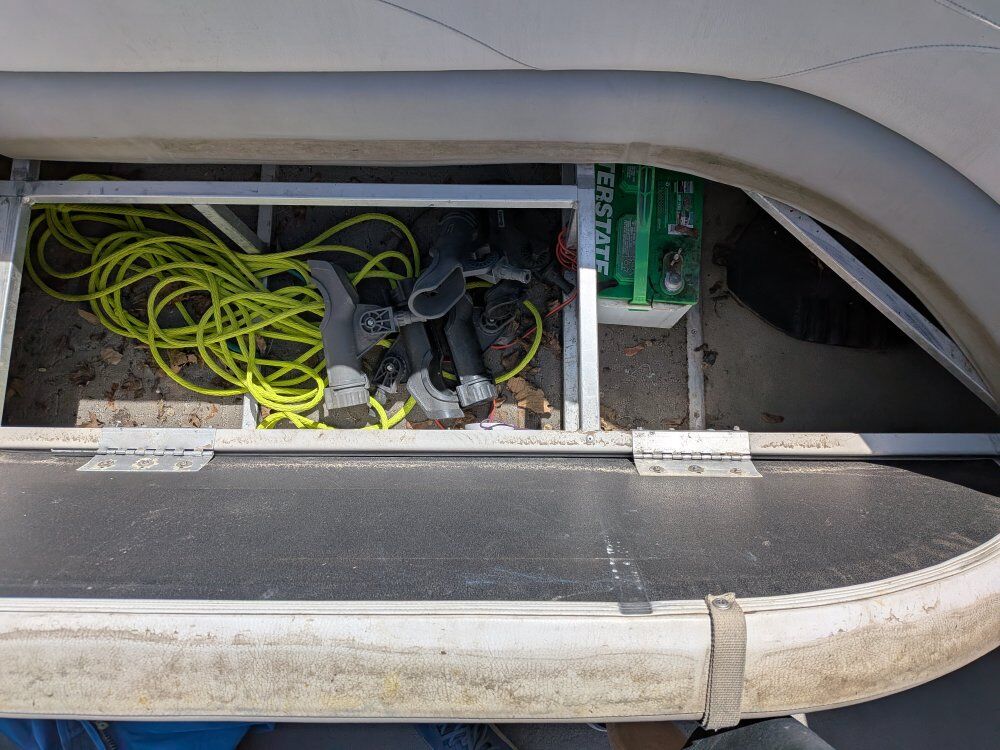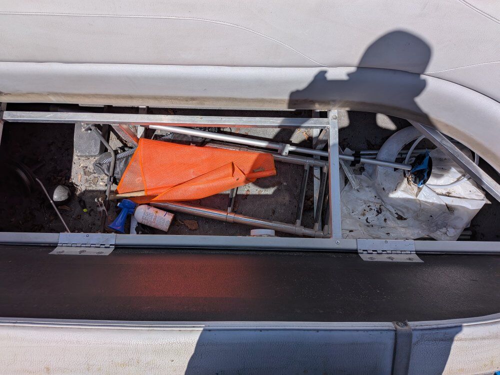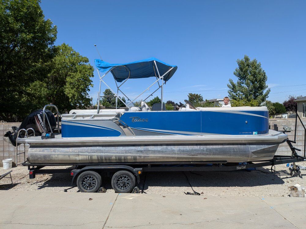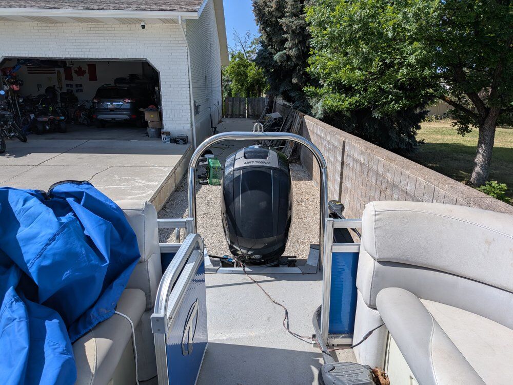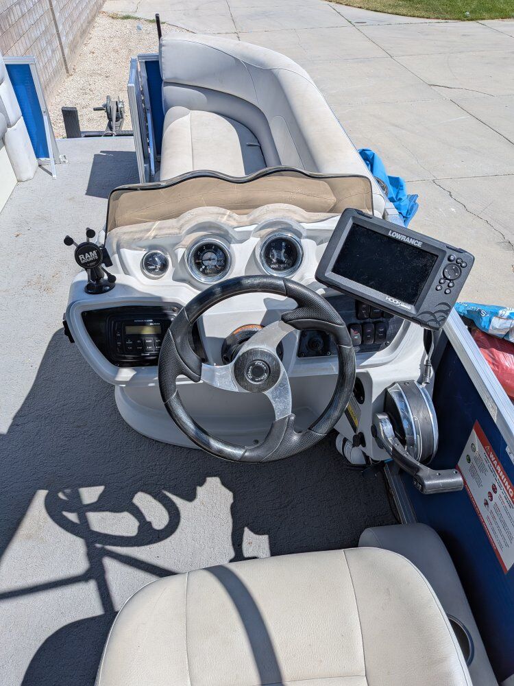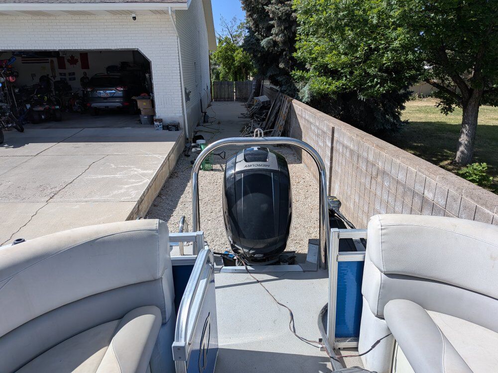 Venmosee pictures. this boat is spacious and great. The Bimini works. comes with a lowrance fish finder and trolling motor. you can pull tubes and shorts with it by hooking the rope to the tow bar. Has a strong Mercury 150hp horsepower motor. the original boat cover tore and I have that if you want it in order to make a new one, but the pictures show the replacement cover I have been using. The only two issues it has were one of the pontoons had a crack but as seen in the pictures a patch was welded on. The other issue is the float in the gas tank is faulty so the gauge doesn't correctly read the fuel level. it starts right up. we haven't used it for over a year but when we stored it I ran it dry so there are no fuel issues. price is negotiable.