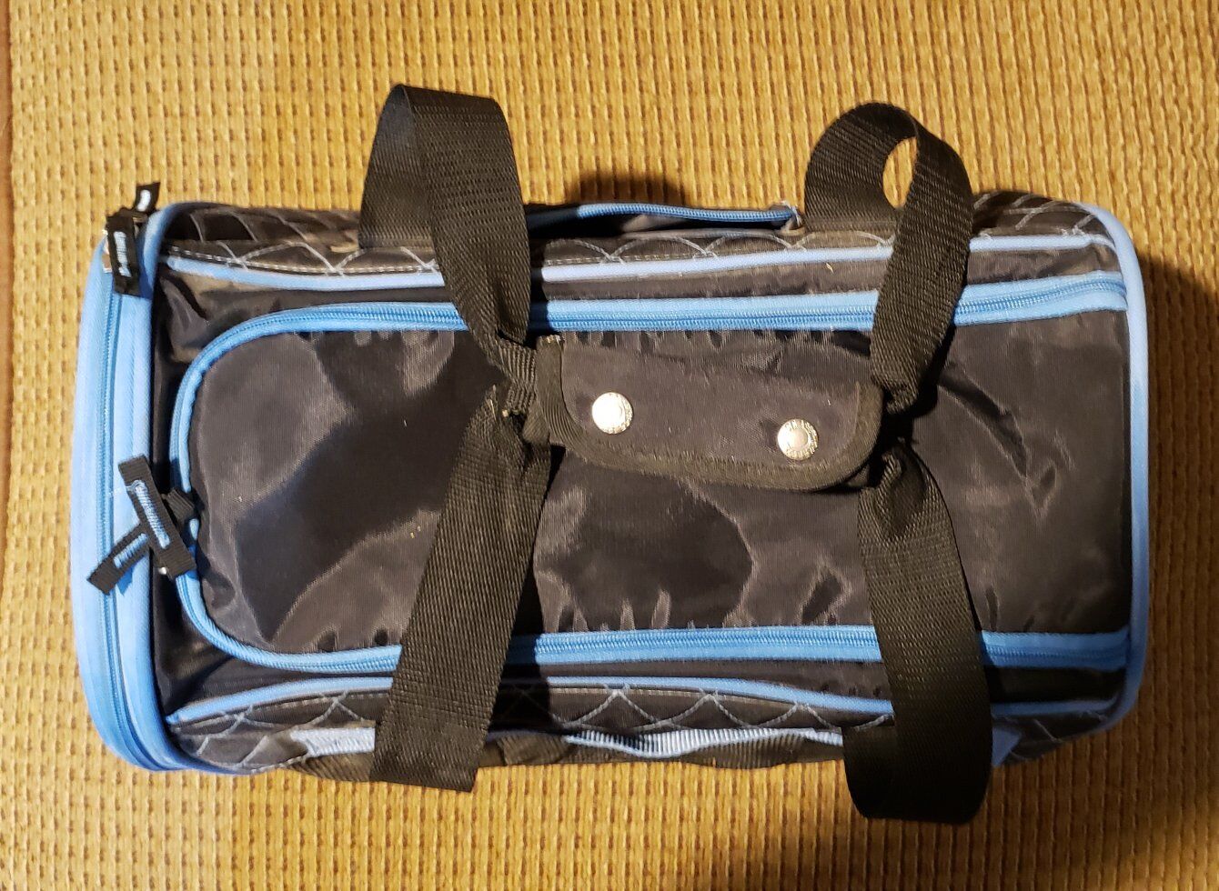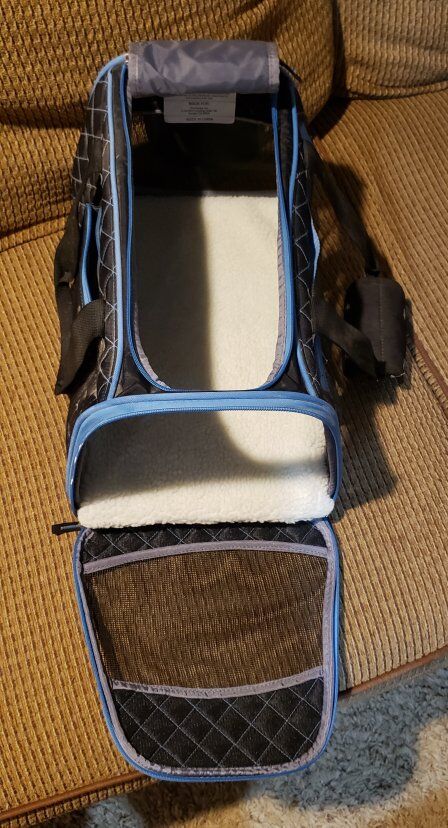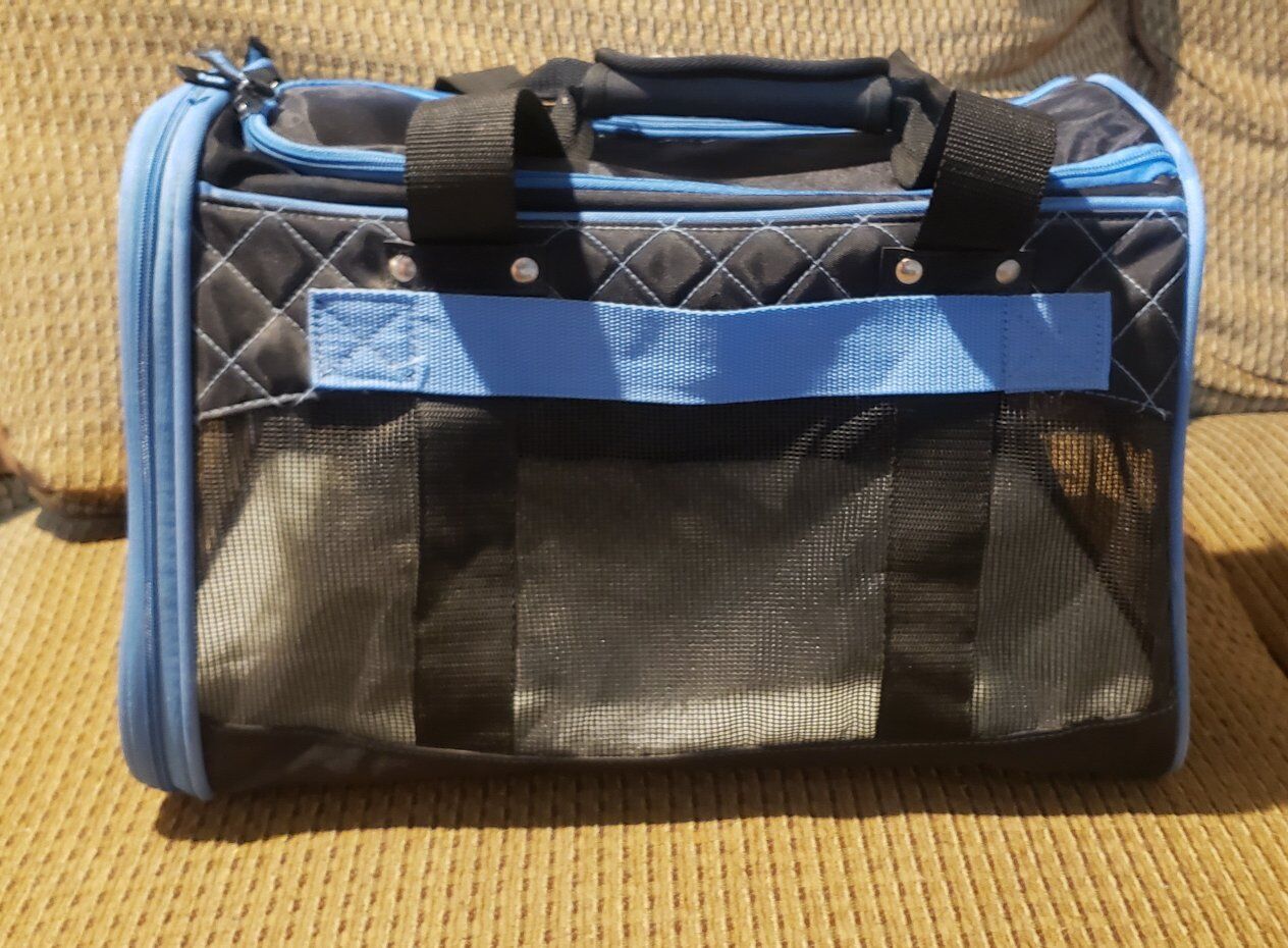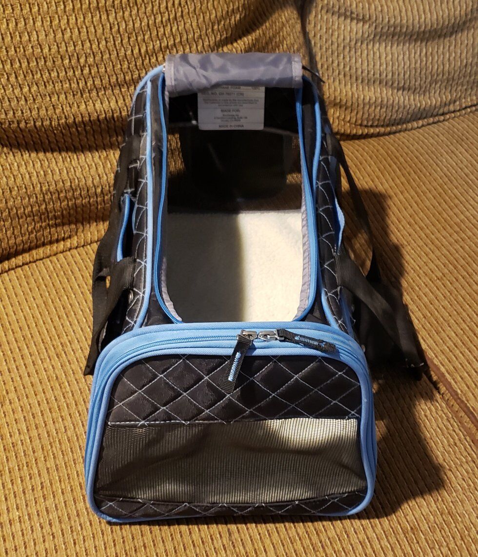 VenmoSherpa medium pet travel carrier. Roughly 10" Wide 11" High 16" Long. Only used a few times. It's in great condition