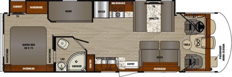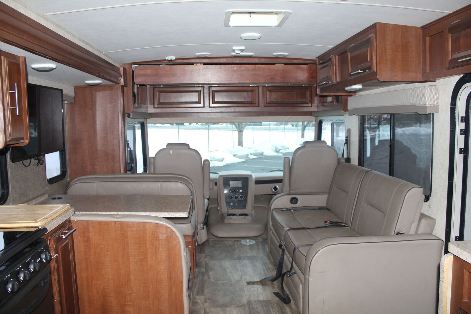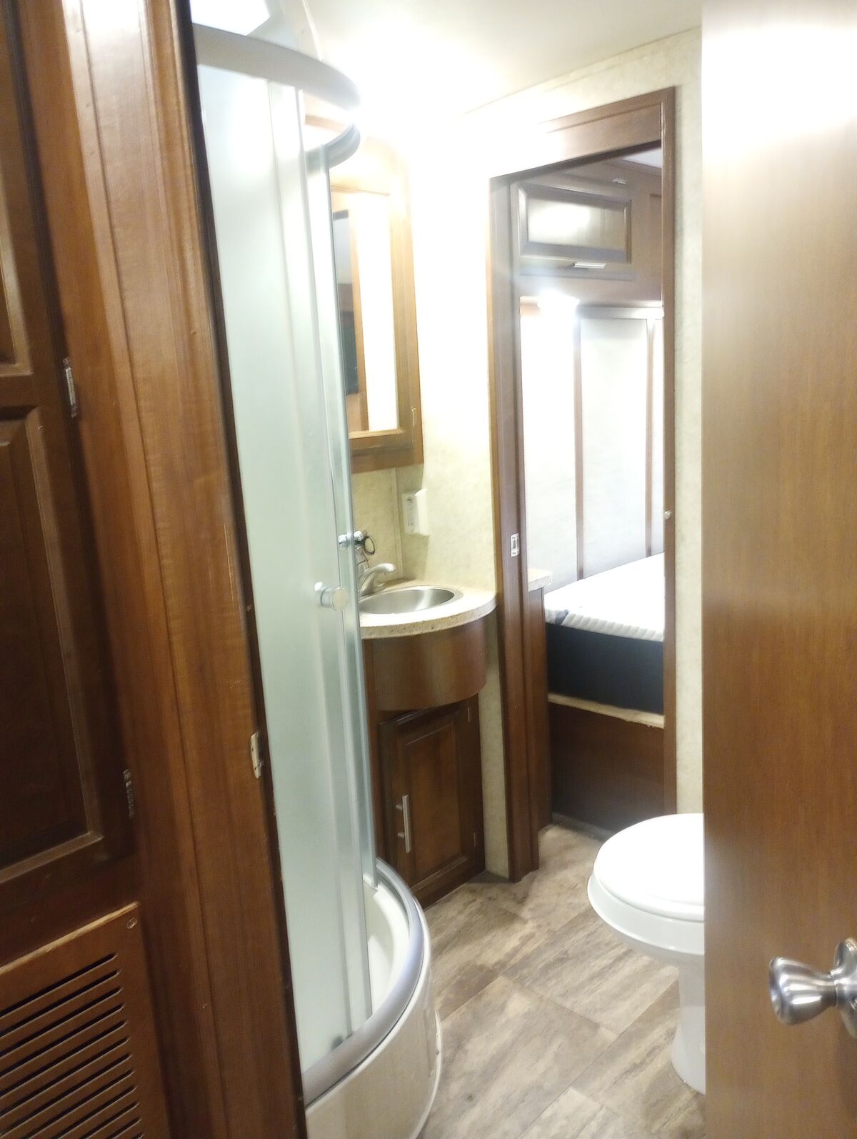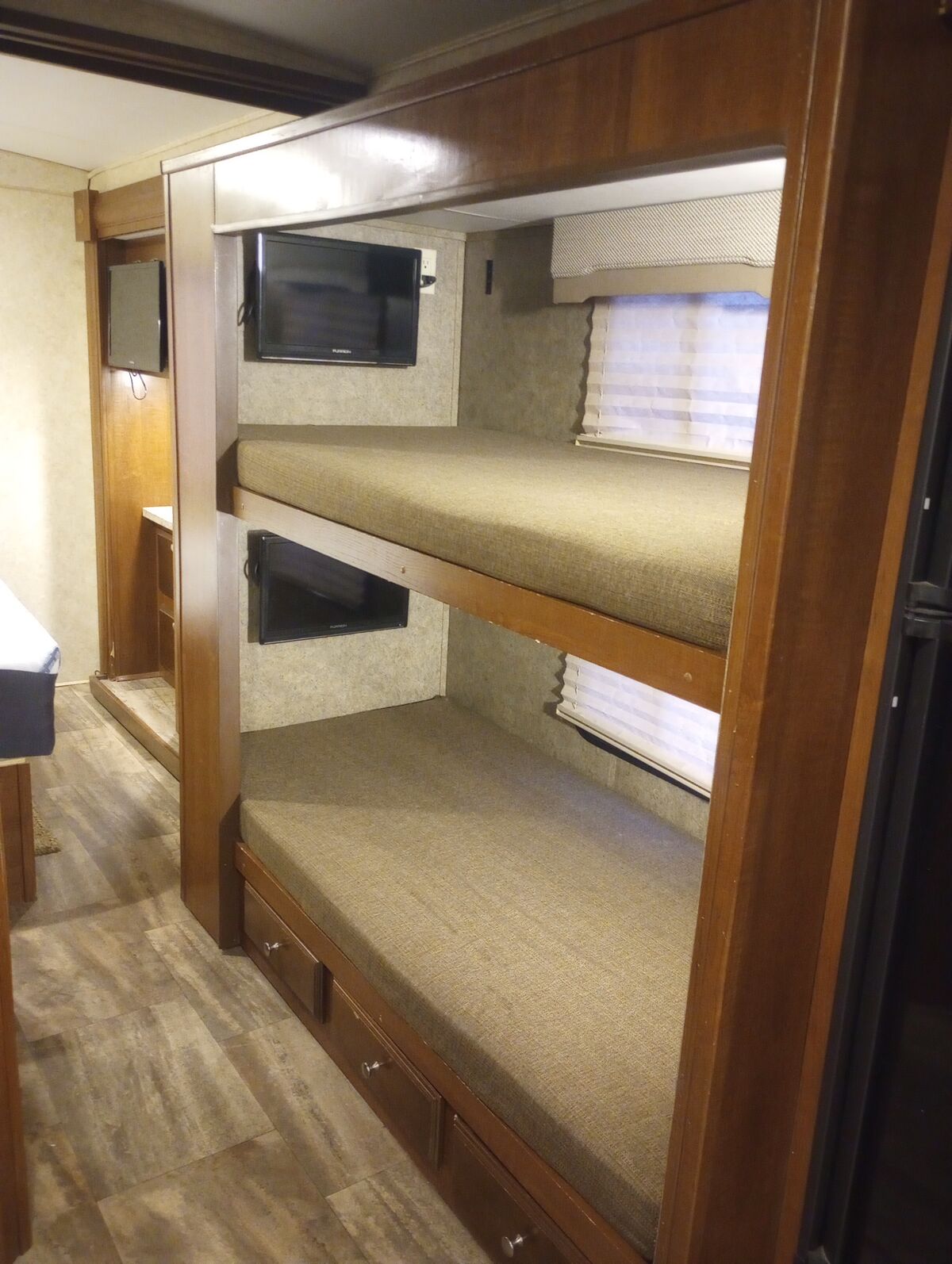 67828 miles. Ford F53 chassis with Triton v10 engine. Clean title, in hand. Sleeps 9 (queen bed with residential mattress, twin mattress bunk beds, dinette sleeper, jackknife sofa, and twin drop-down bunk above the cab). Seat belts for 6. This is a 30 amp unit (one ducted A/C unit).