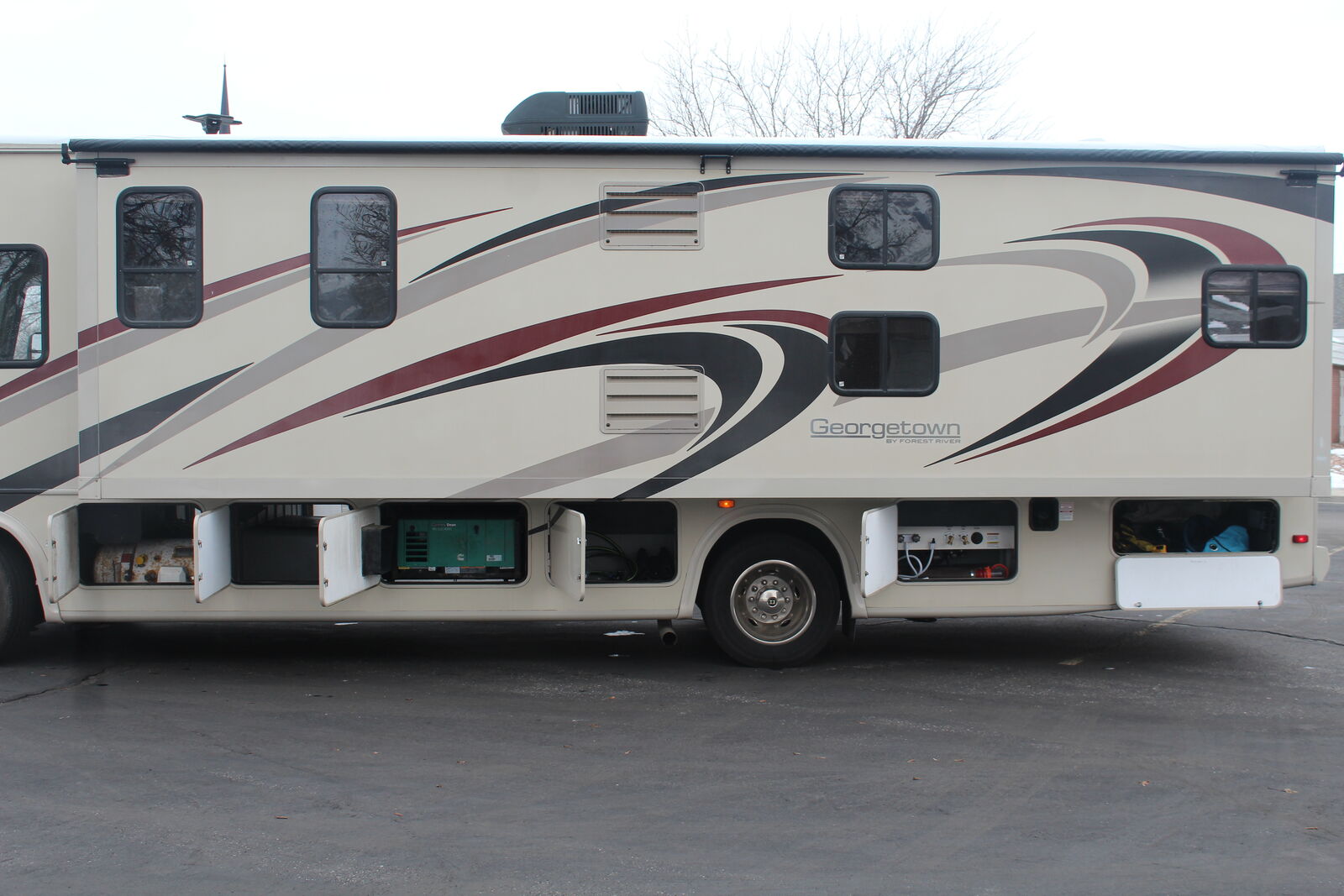The leveling system works fine, but has some quirks that we can go over if you want to come look at the motorhome. The generator runs for a bit but then shuts off, we are planning on taking it in to make sure it is calibrated correctly.