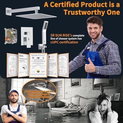 Reliable Support & Certified Safety: Backed by 24/7 customer support, this Rain Shower Head and Handle Set ensures a stress-free experience. It features a cUPC certified pressure balance valve with built-in check valves to monitor water pressure and prevent scalding, approved by the California Energy Commission for standard 1/2-inch US pipe connections.