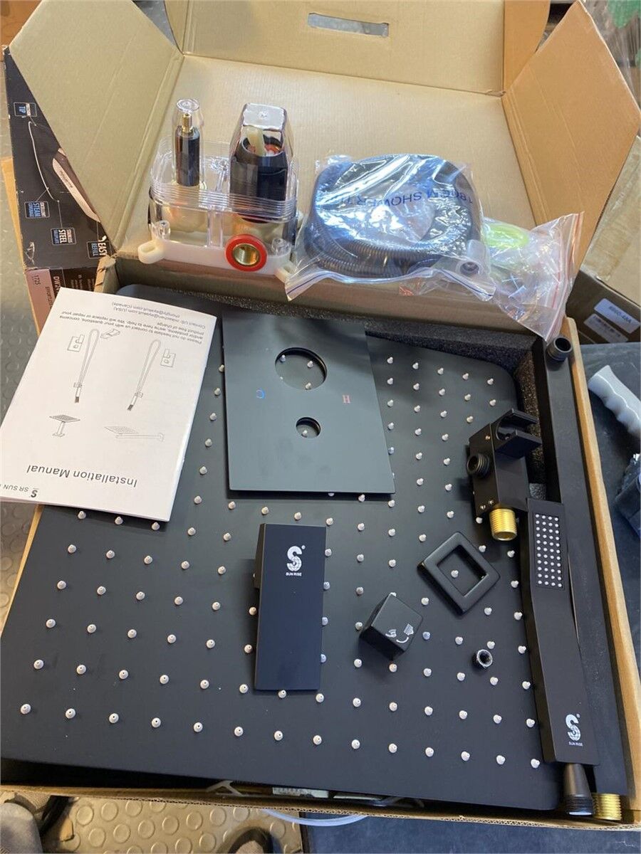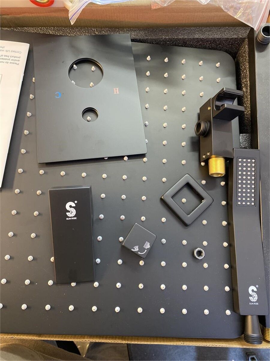 Retailer's Title: SR SUN RISE Matte Black Square Rainfall Shower Head and Handle Set, Wall Mounted Shower Fixtures, Metal Shower Faucet Trim Repair Kits (With Shower Valve) 16 Inches