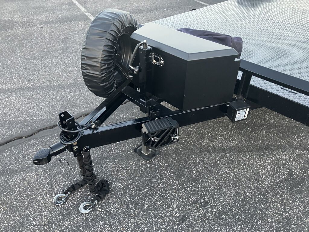 Features: -13,000 lb electric winch, with wireless remote, (can be plugged into the winch, if remote battery is dead) (Wireless & Plug-In) -4 In-Deck/Recessed Tie Down D-Rings -Low Profile Drive Over Fenders -2-5/16 Hitch -Spare Tire -Wheels Chocks -Breakaway Battery Brake Box