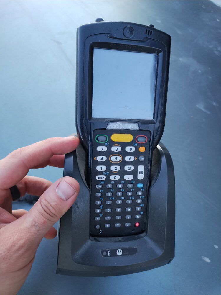 VenmoHandheld store scanner, has two batteries, charger and power cord.