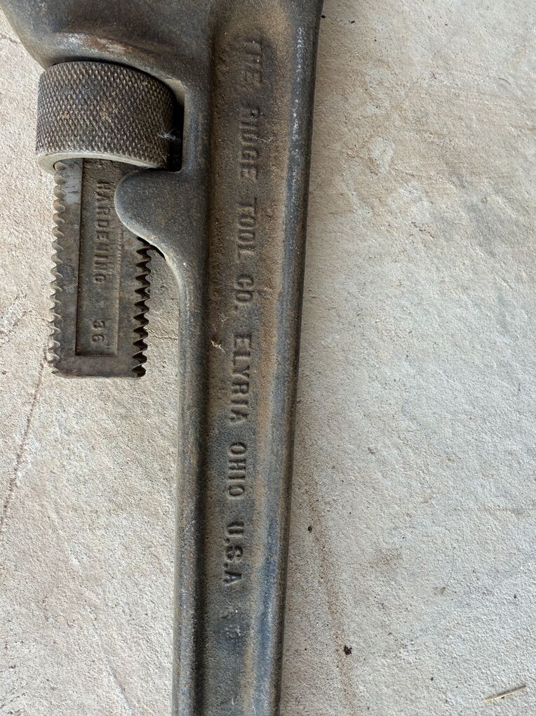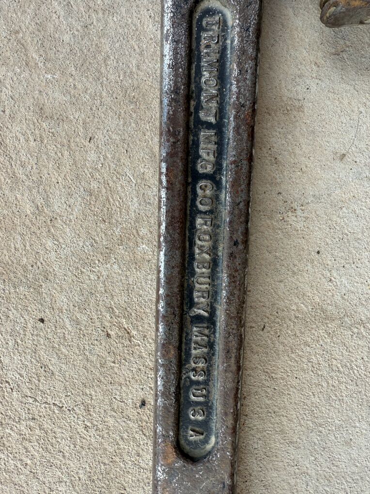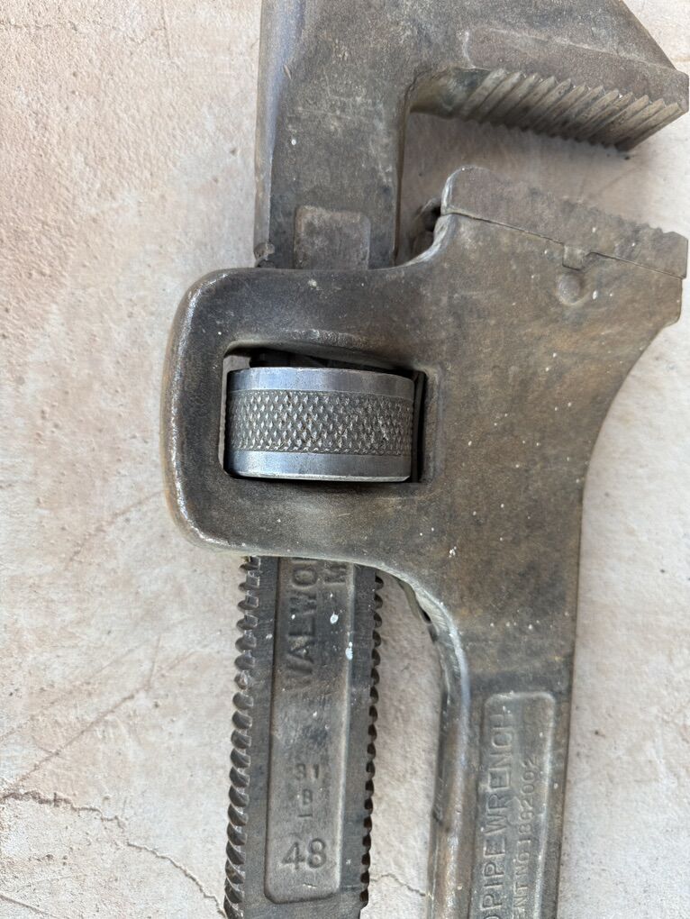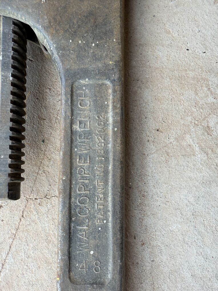 ApplePayThree wrench set, all in great condition with very little wear. Made of iron in the USA. First wrench is a 48” Walco pipe wrench made by the Walworth Co showing little to no wear (may be NOS). The second wrench is a 36” made by the Rigid Tool Company. The third wrench is a 24” by the Trimont Mfg Co. All three are vintage tools that are well made and completely functional.