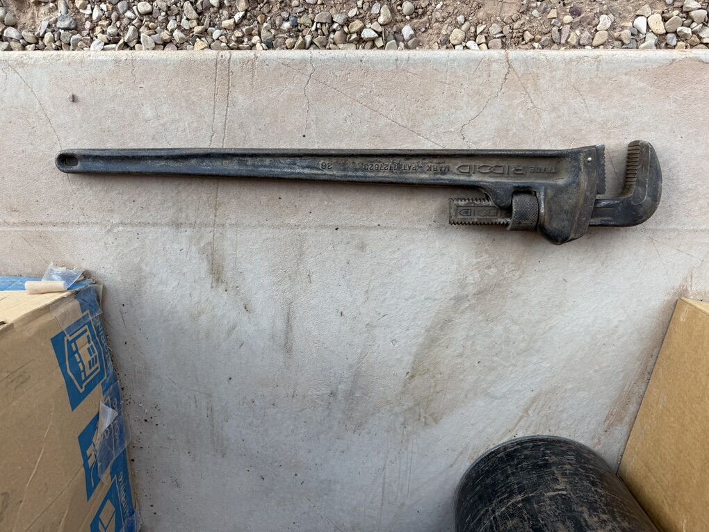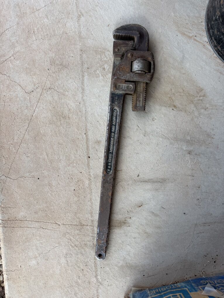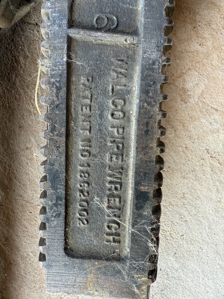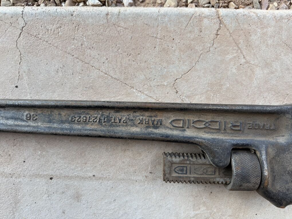 ApplePayThree wrench set, all in great condition with very little wear. Made of iron in the USA. First wrench is a 48” Walco pipe wrench made by the Walworth Co showing little to no wear (may be NOS). The second wrench is a 36” made by the Rigid Tool Company. The third wrench is a 24” by the Trimont Mfg Co. All three are vintage tools that are well made and completely functional.