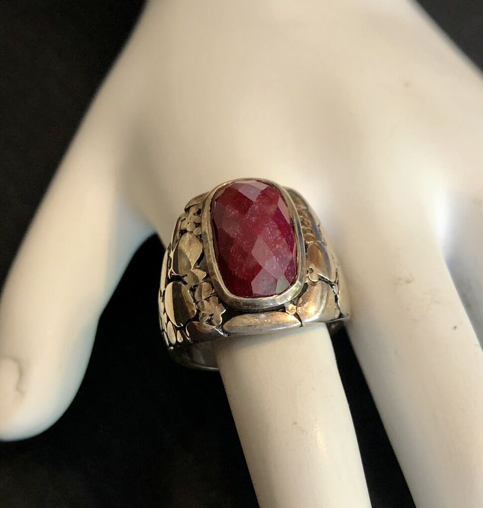 Size 7 sterling silver ring with 6 CTW checkerboard cut Ruby. New in box!